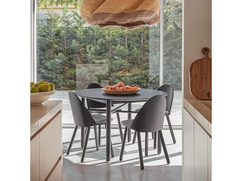 Junco - Table à manger 4 personnes ronde en bois - Couleur - Noir