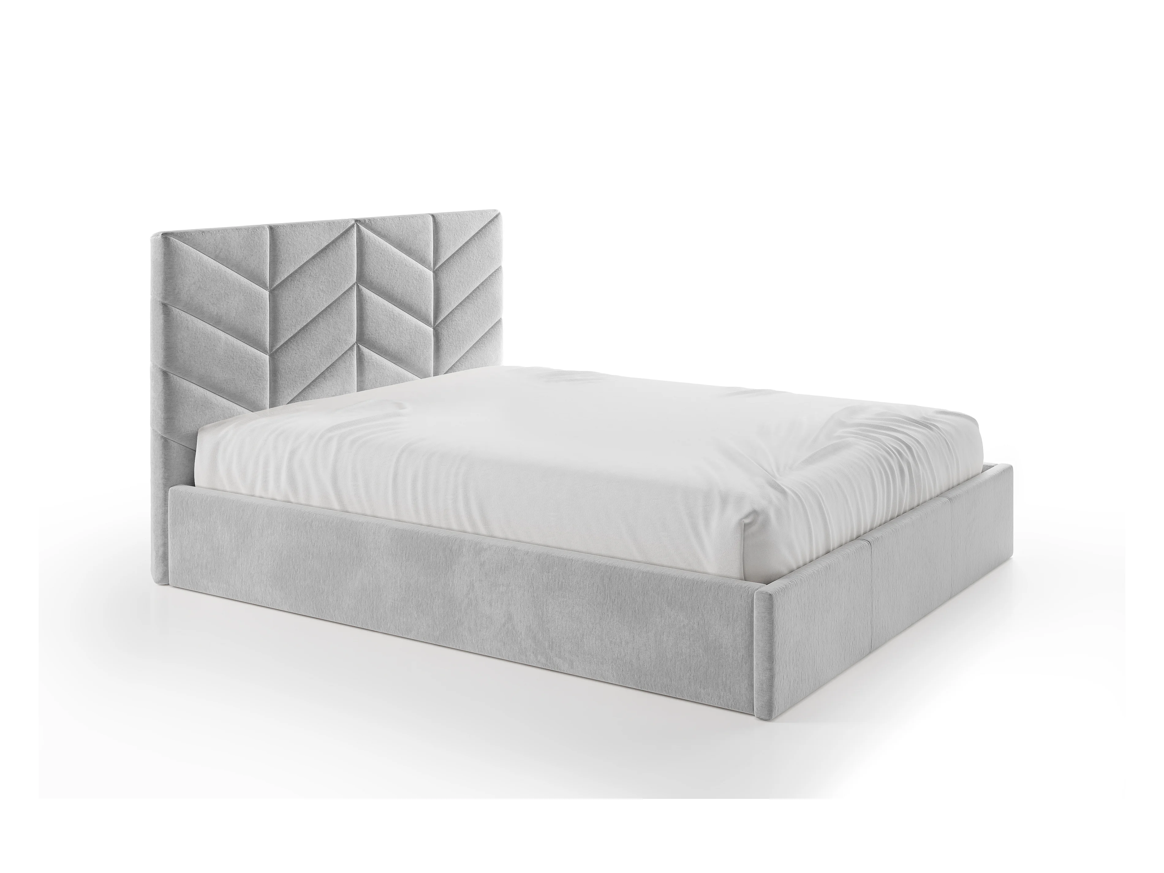 Lit coffre 200 x 200 cm - Tissu texturé - Gris - JUSTANI