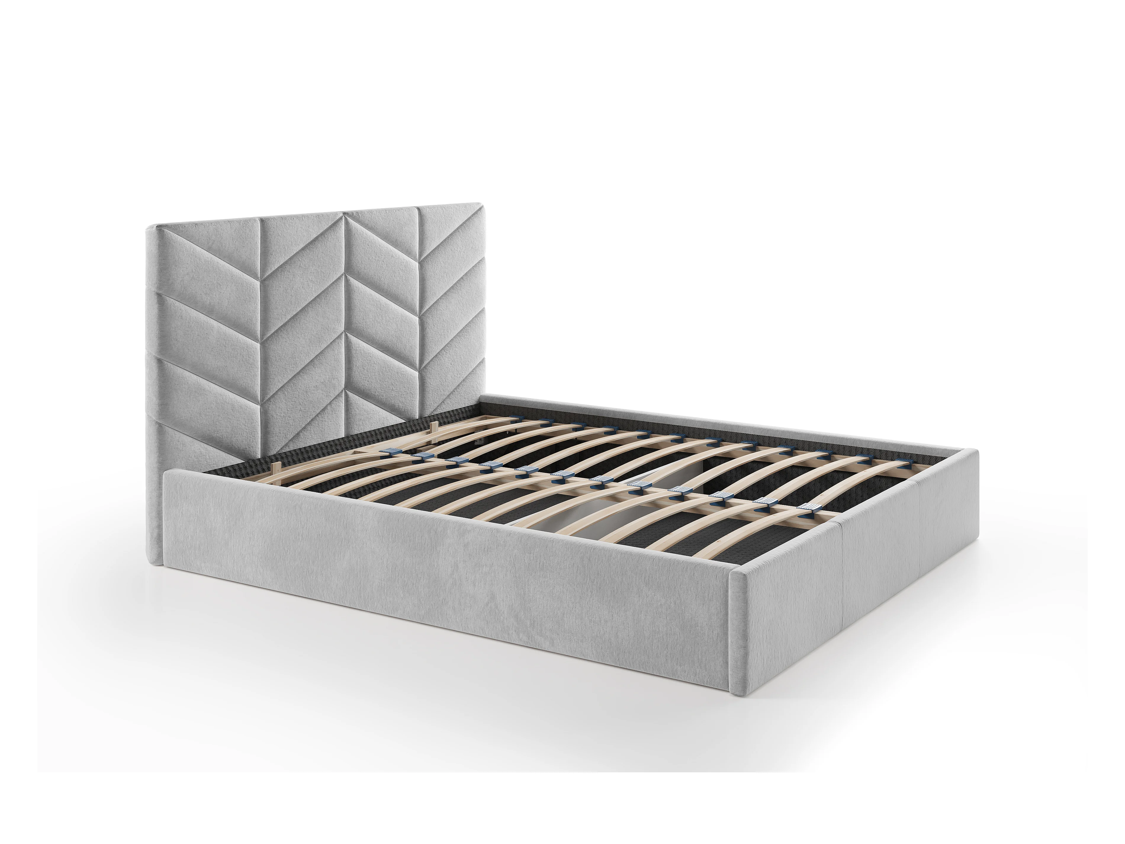 Lit coffre 200 x 200 cm - Tissu texturé - Gris + Matelas - JUSTANI