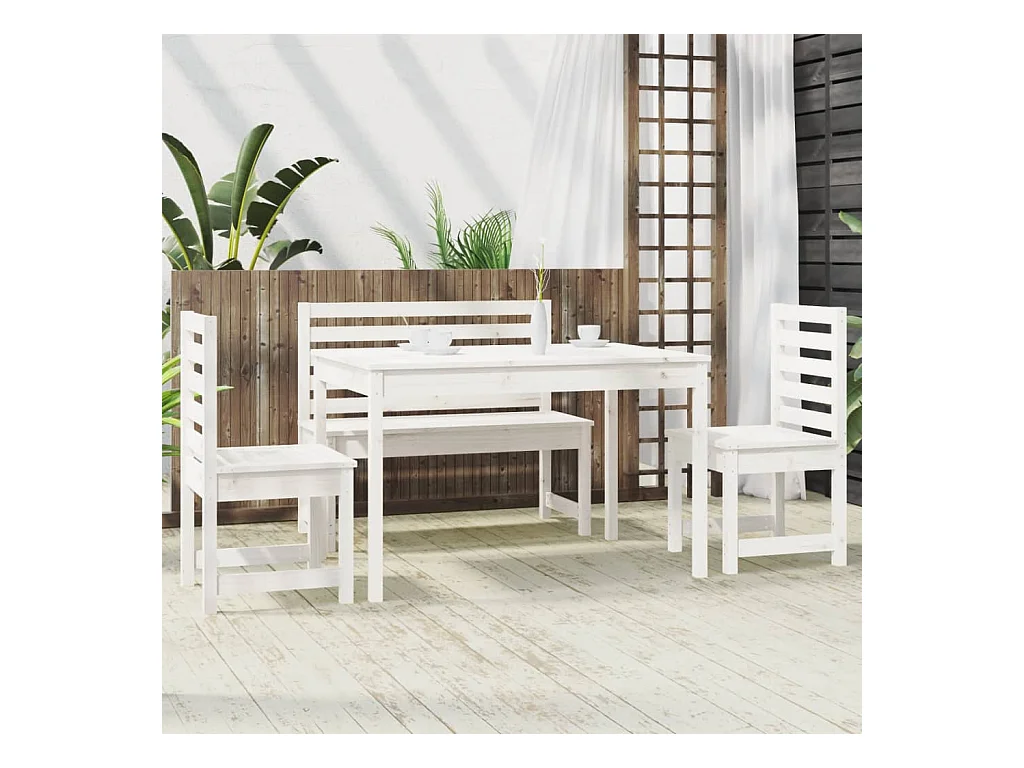 Kaan Ensemble à manger de jardin 4 pcs blanc bois massif de pin