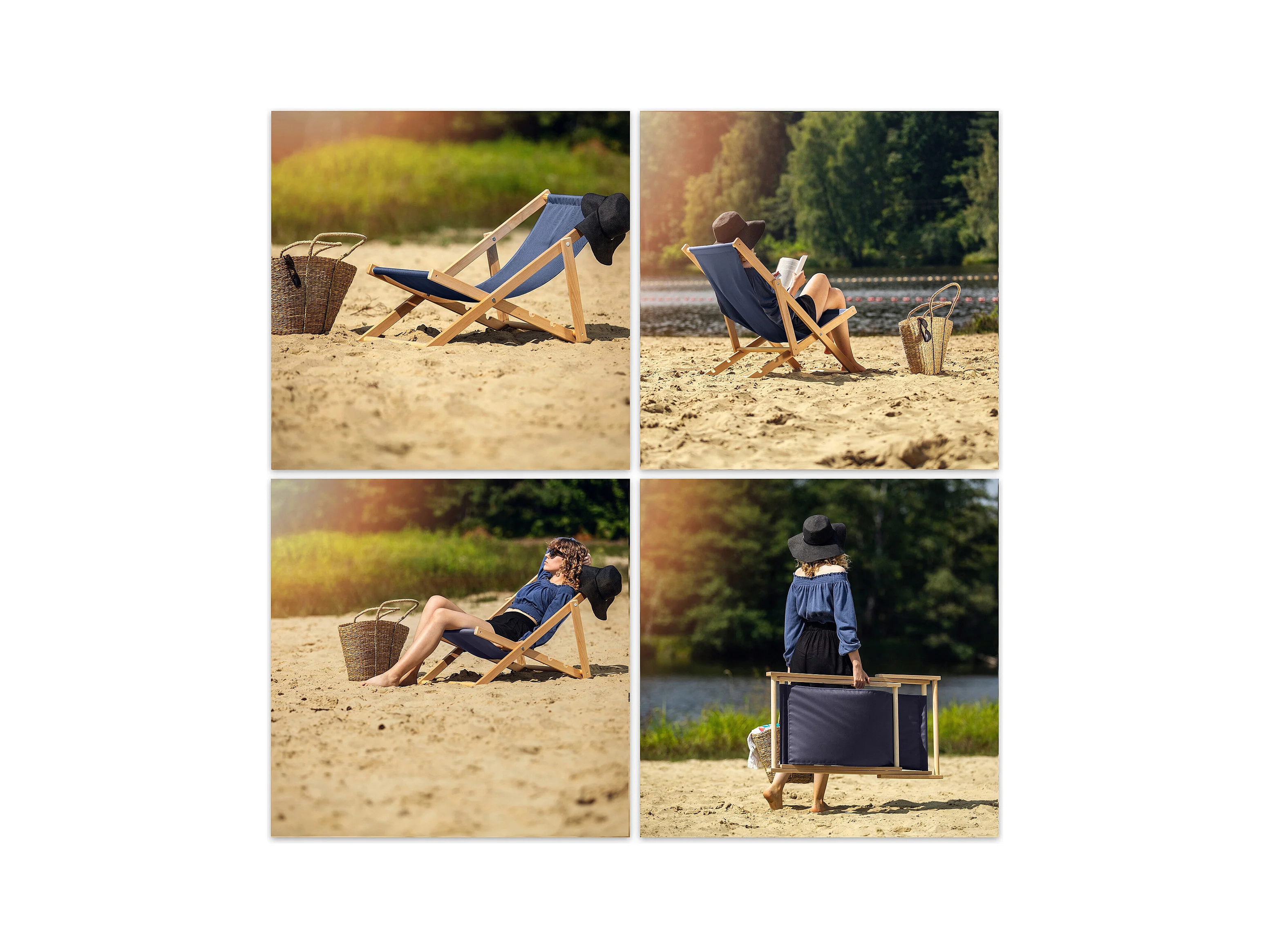 Lot de 2 chiliennes pliantes règlables - 100% acrylique - bois hêtre - Bleu/Blanc - PAROS