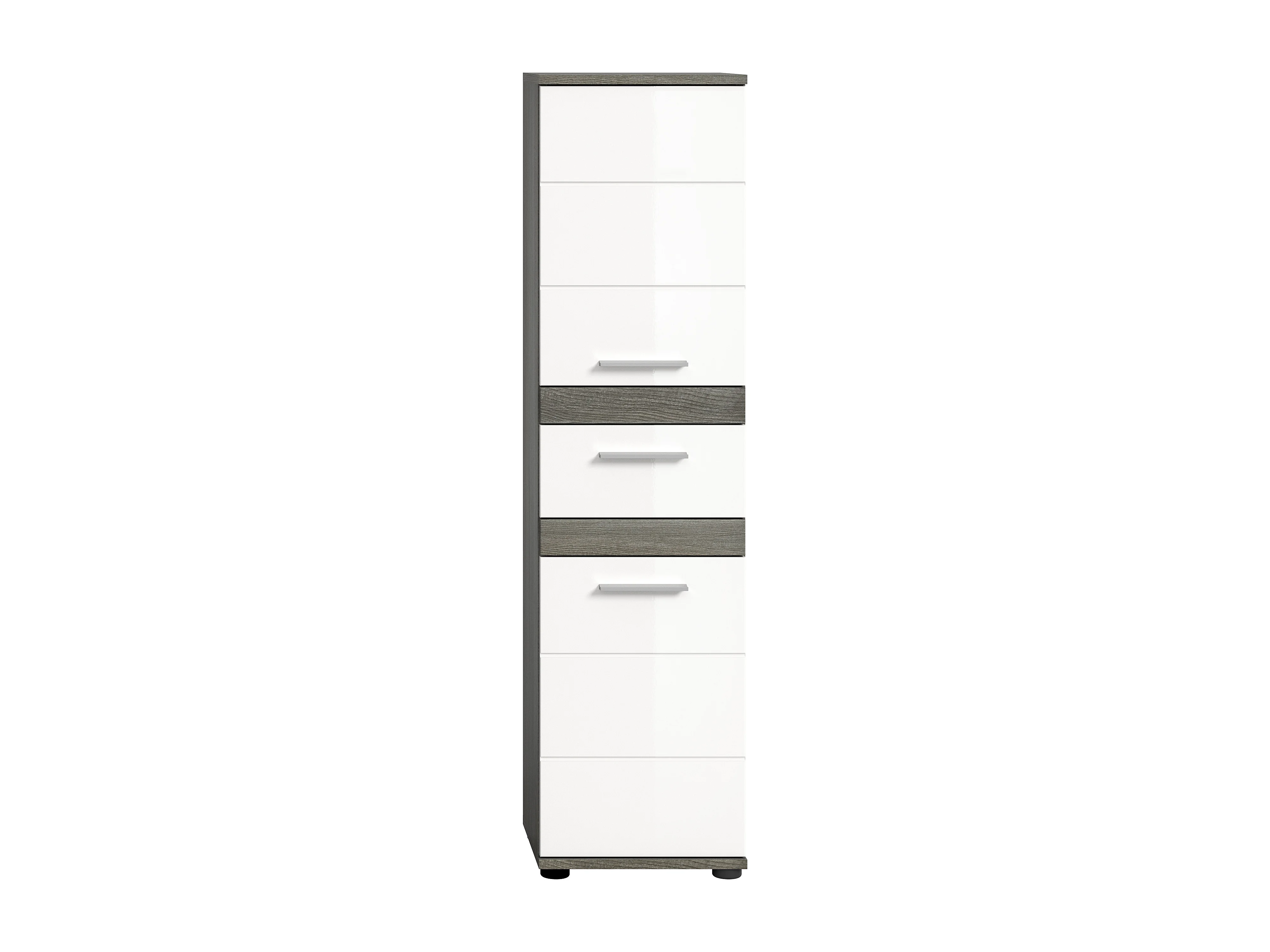 Kaleb - Colonne basse en mélaminé blanc et argenté (L/H/P : 35x137x31 cm)