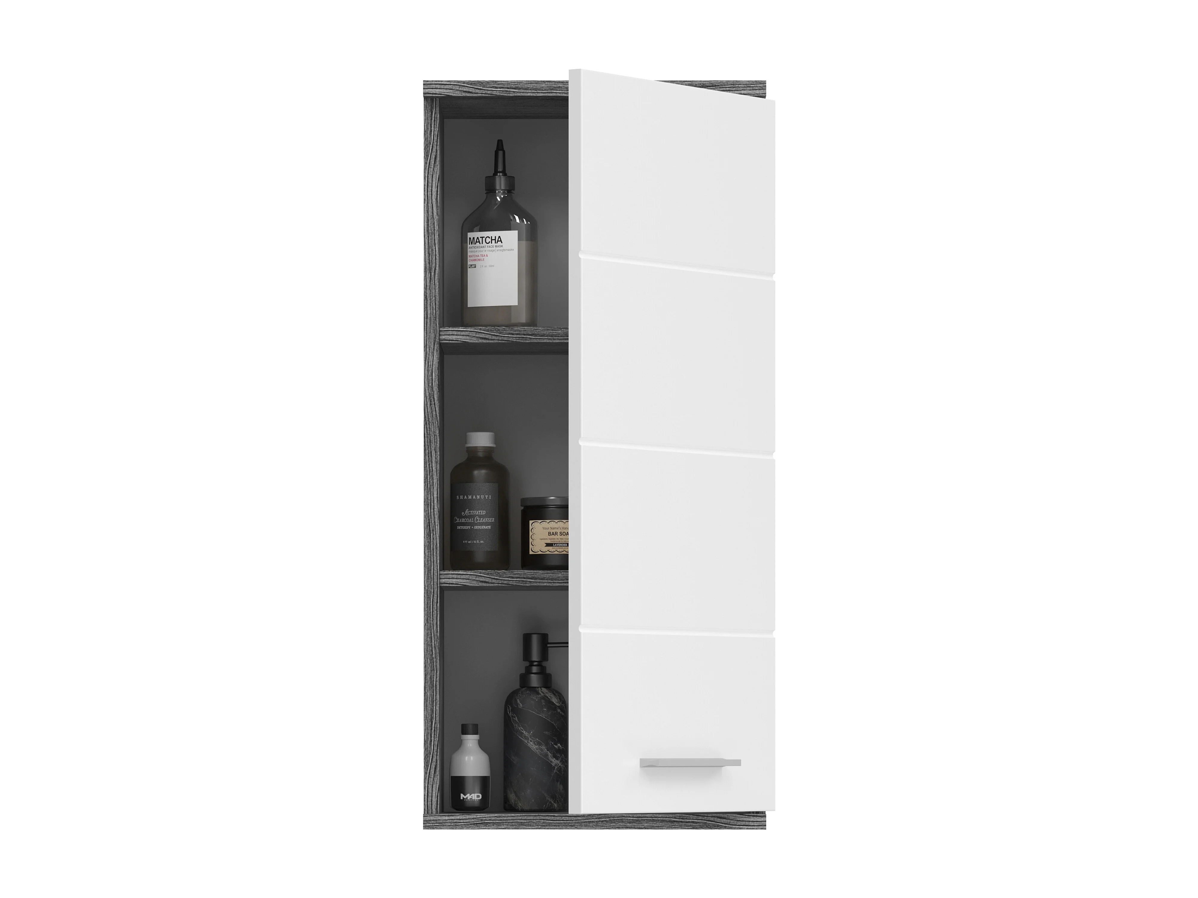 Kaleb - Meuble haut en mélaminé blanc et argenté (L/H/P : 35x77x25 cm)