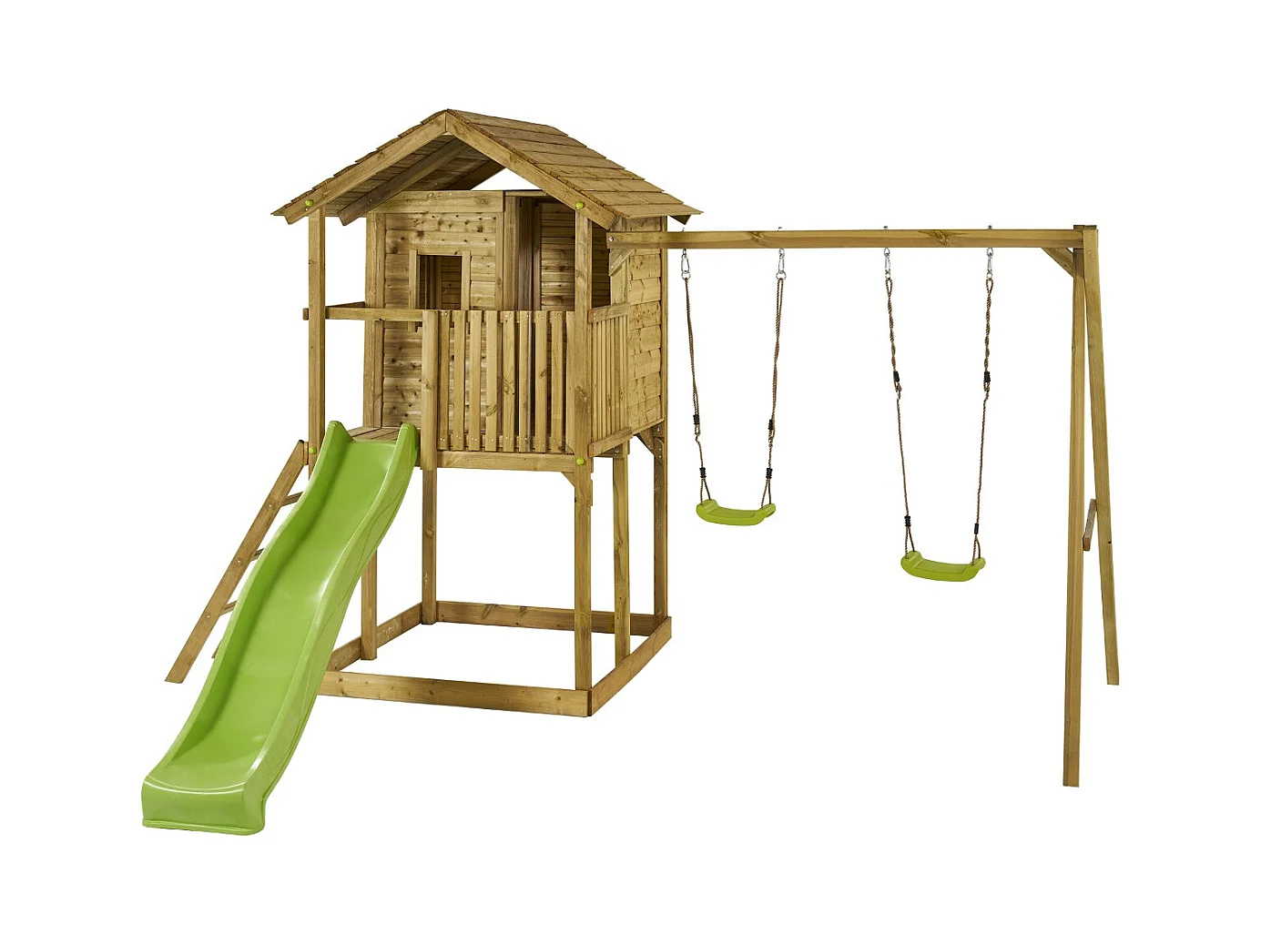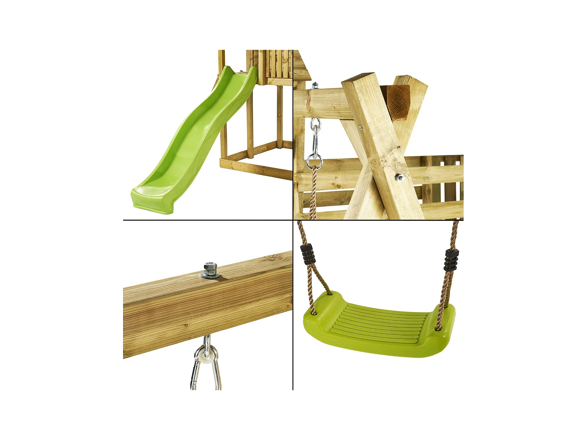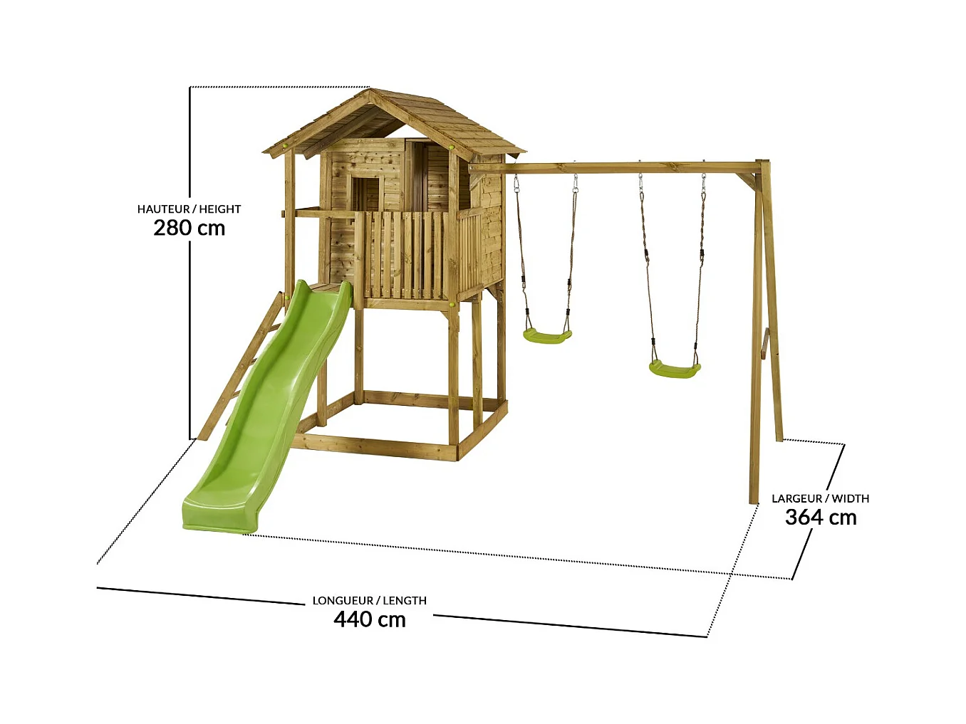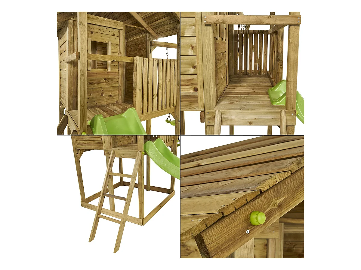 Kangui - Aire de jeux en bois avec cabane sur pilotis WAPITI - Balançoires, toboggan, cabane avec balcon