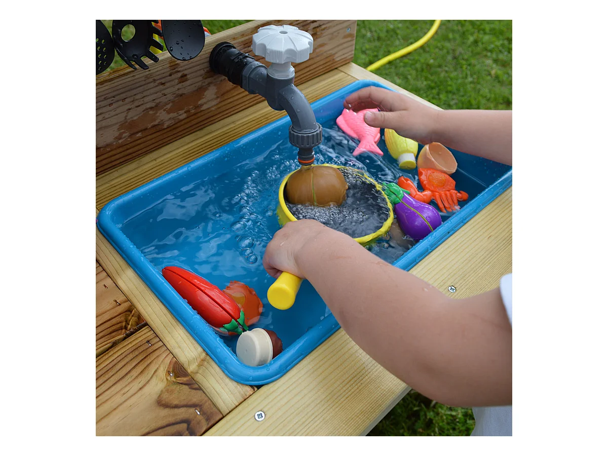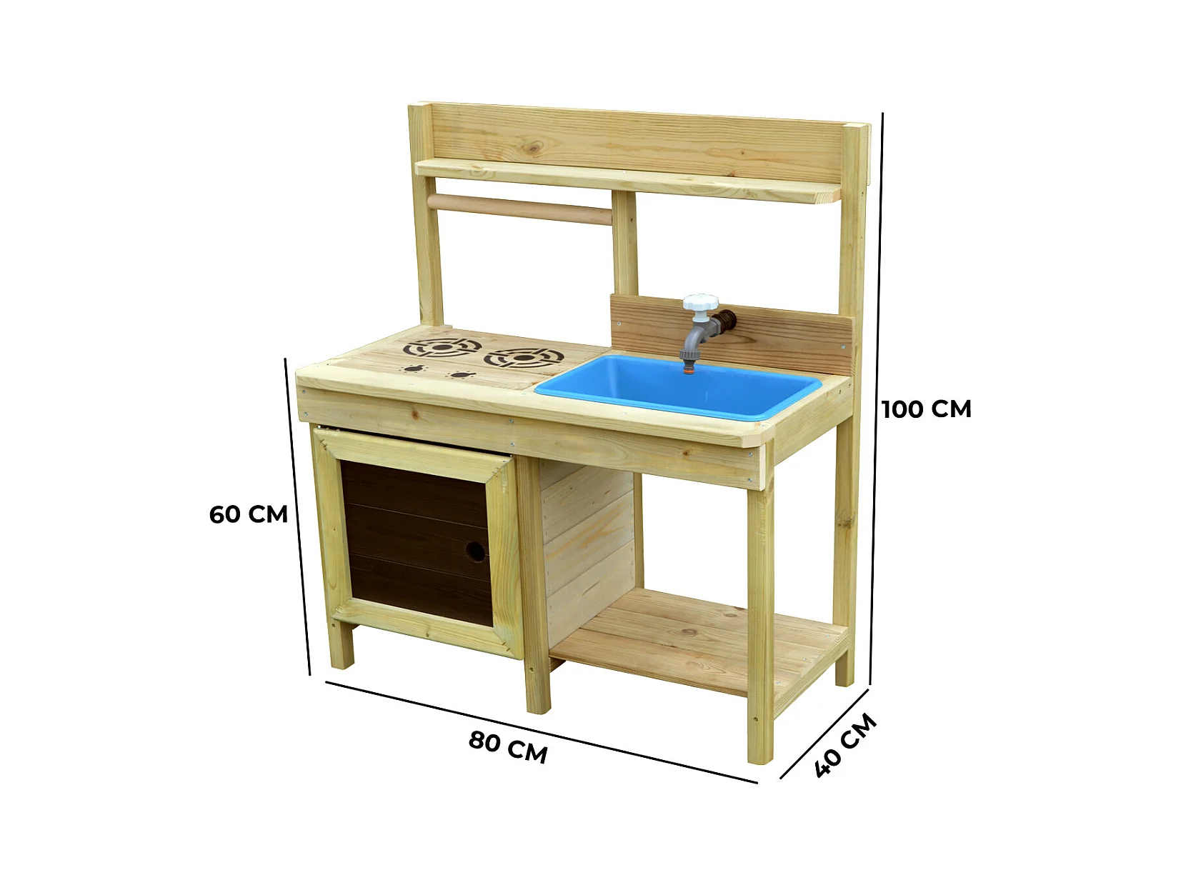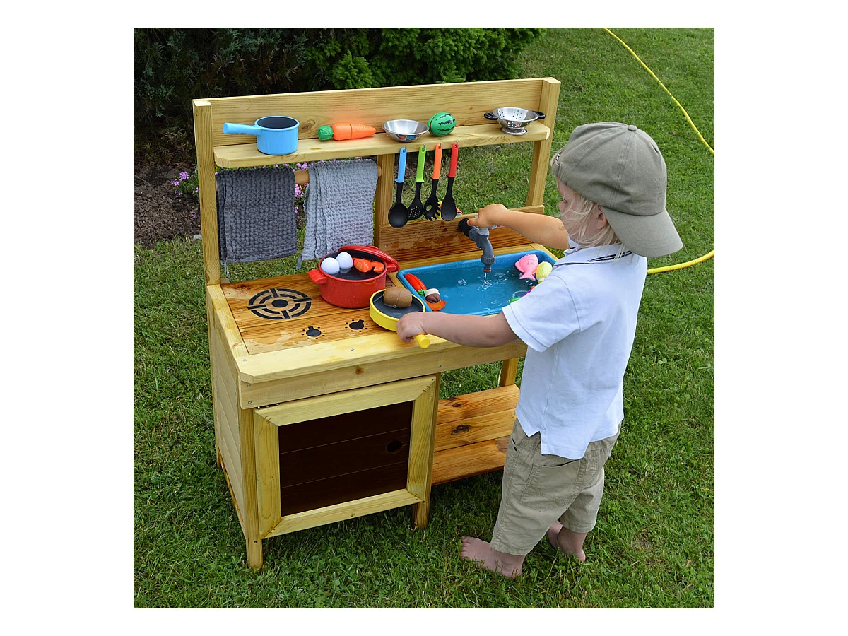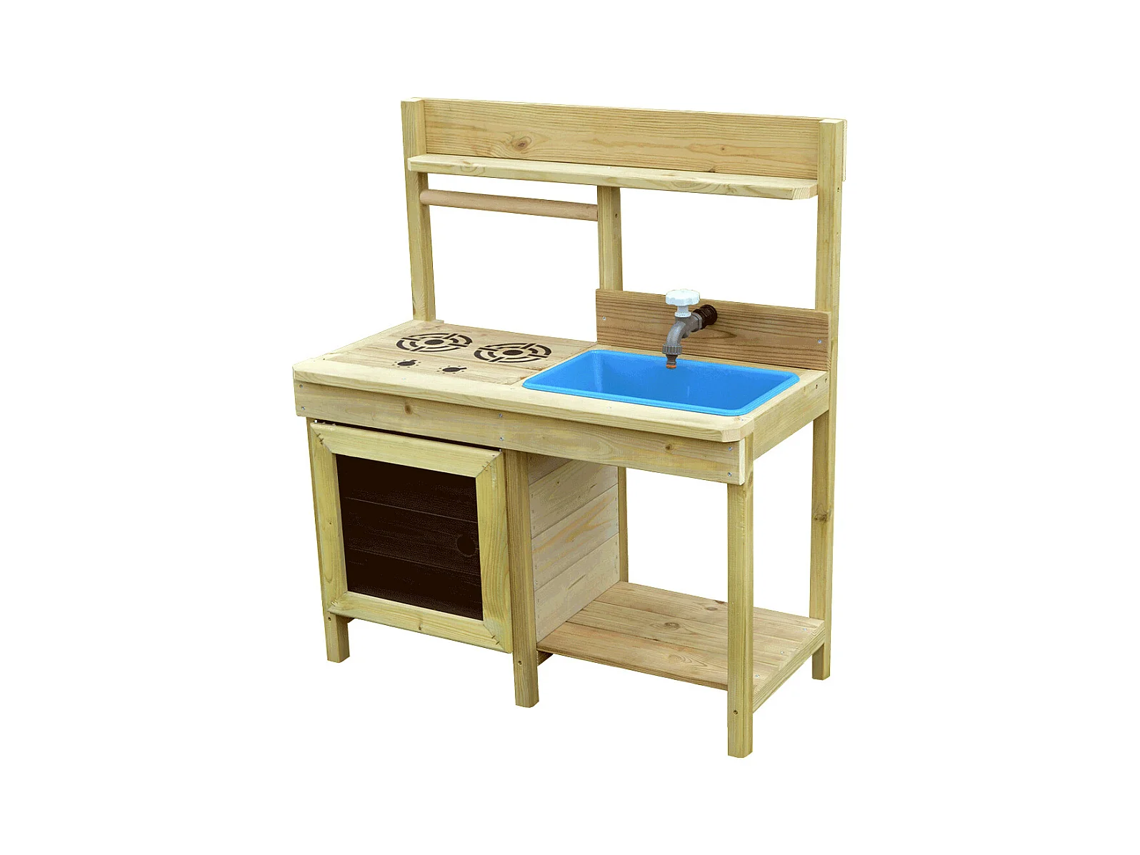 KANGUI - Cuisine extérieure bois FSC, bac à eau, robinet, évier pour jeux aux jardin