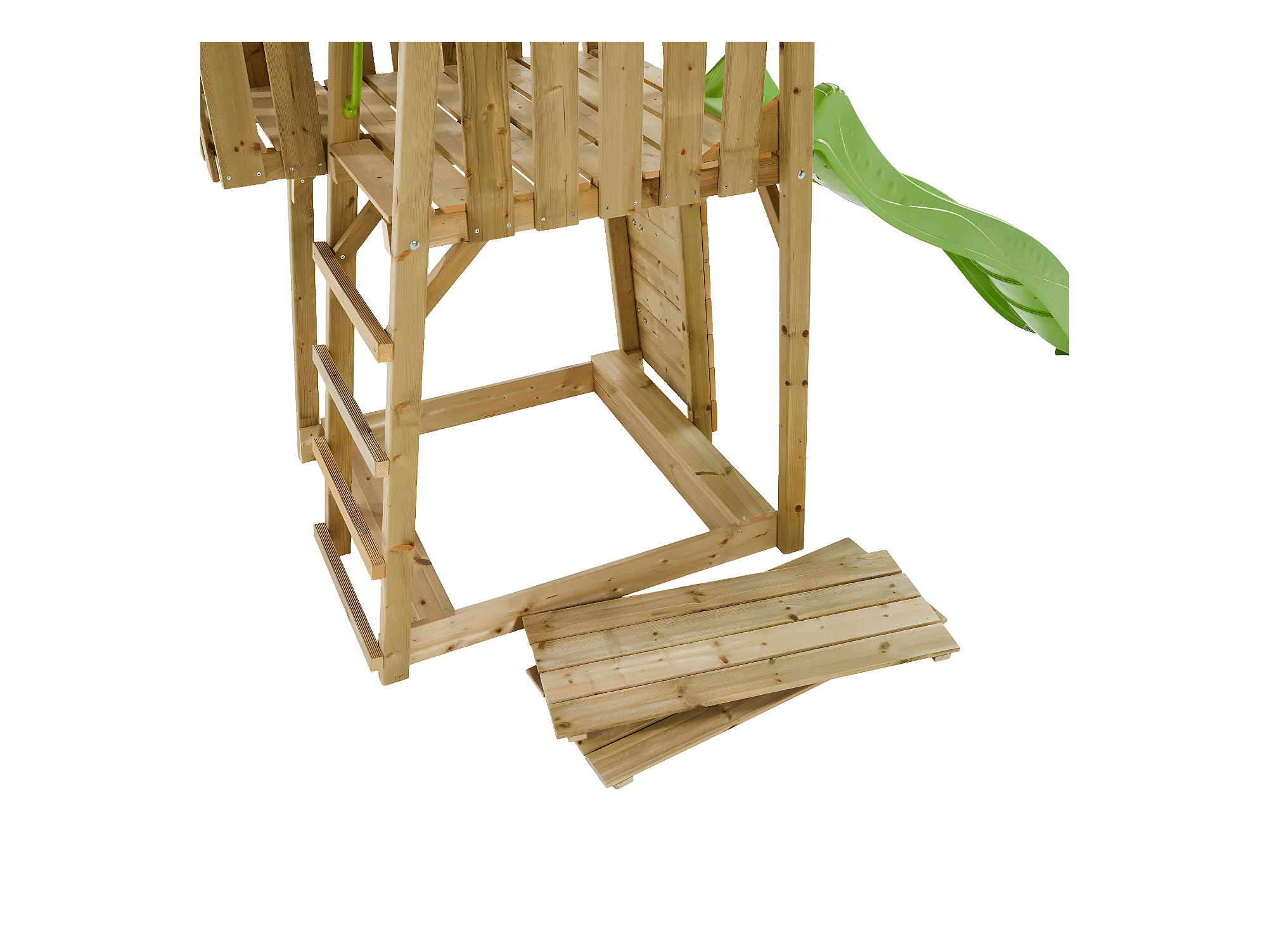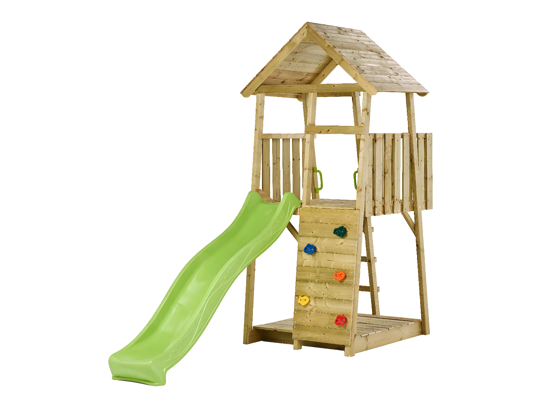 KANGUI Tour de jeux en bois Wiki - Toboggan, mur d'escalade, cabane, échelle et grand bac à sable