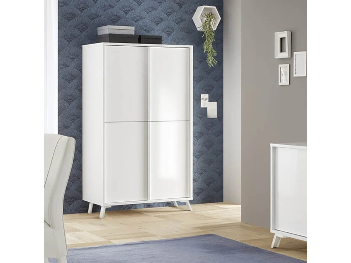 KANSAS WHITE - Ensemble séjour aspect chêne noir pieds métal noir