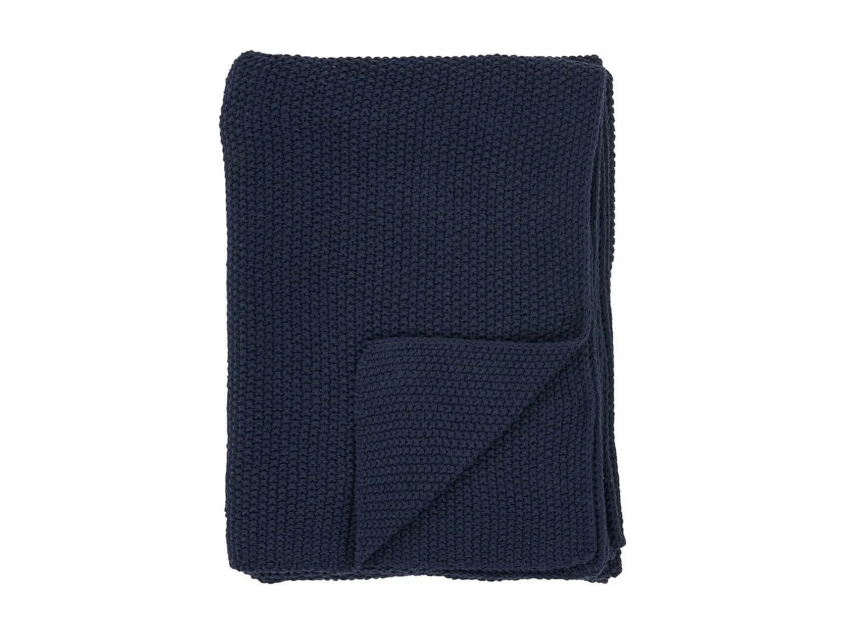 KAPAS - Plaid 130x160 cm 100% Coton Recyclé Bleu Marine