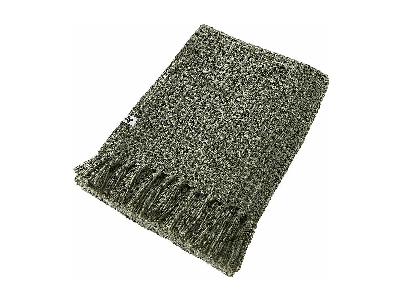 KARL - Plaid à Franges 100% Recyclé Tissage Nid d'abeilles 180x220cm Thym