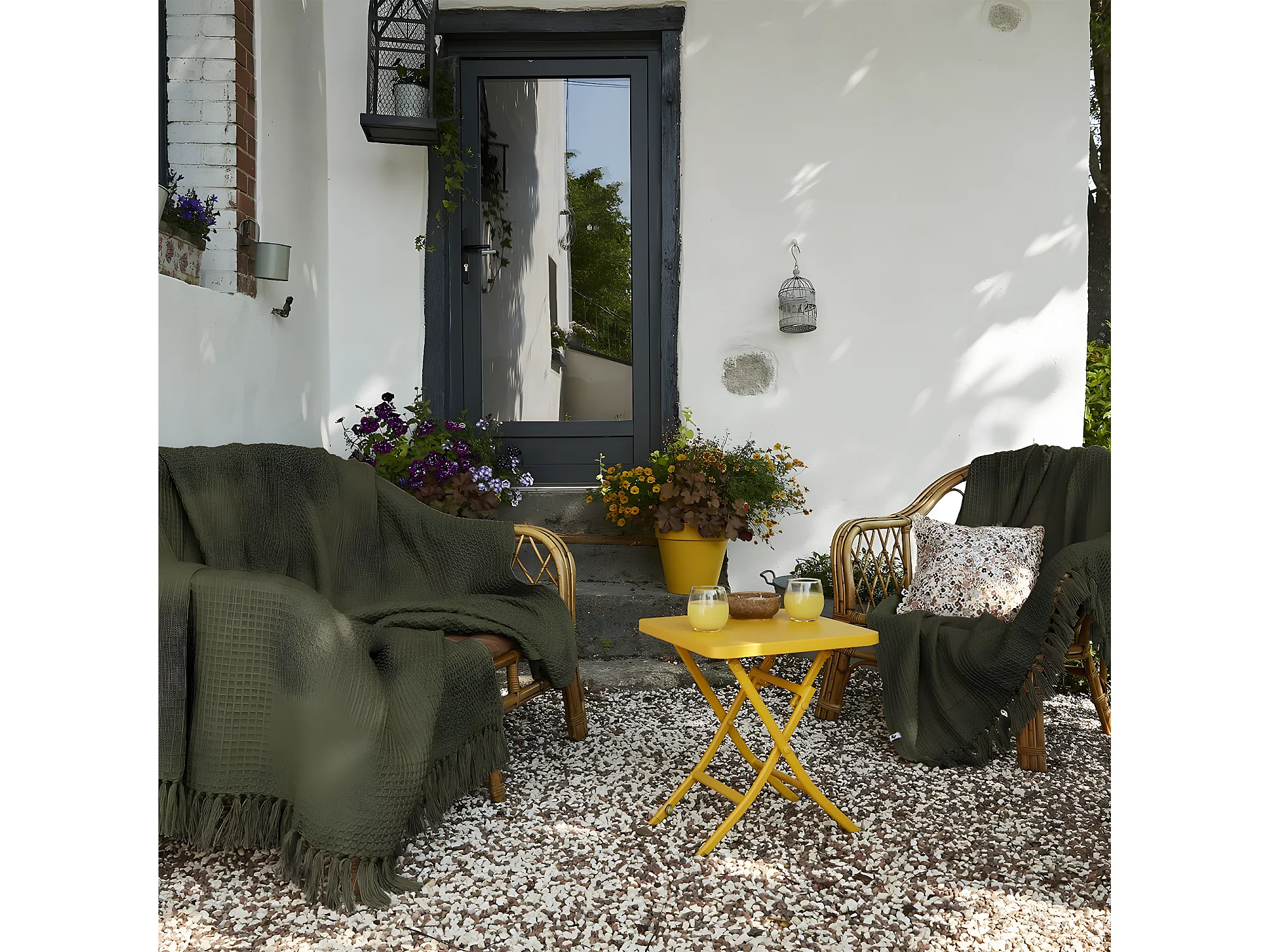 KARL - Plaid à Franges 100% Recyclé Tissage Nid d'abeilles 130x160cm Thym