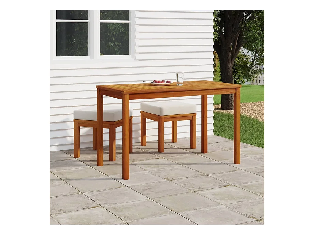 Kaustinen Ensemble à manger de jardin 3 pcs et coussins Acacia solide