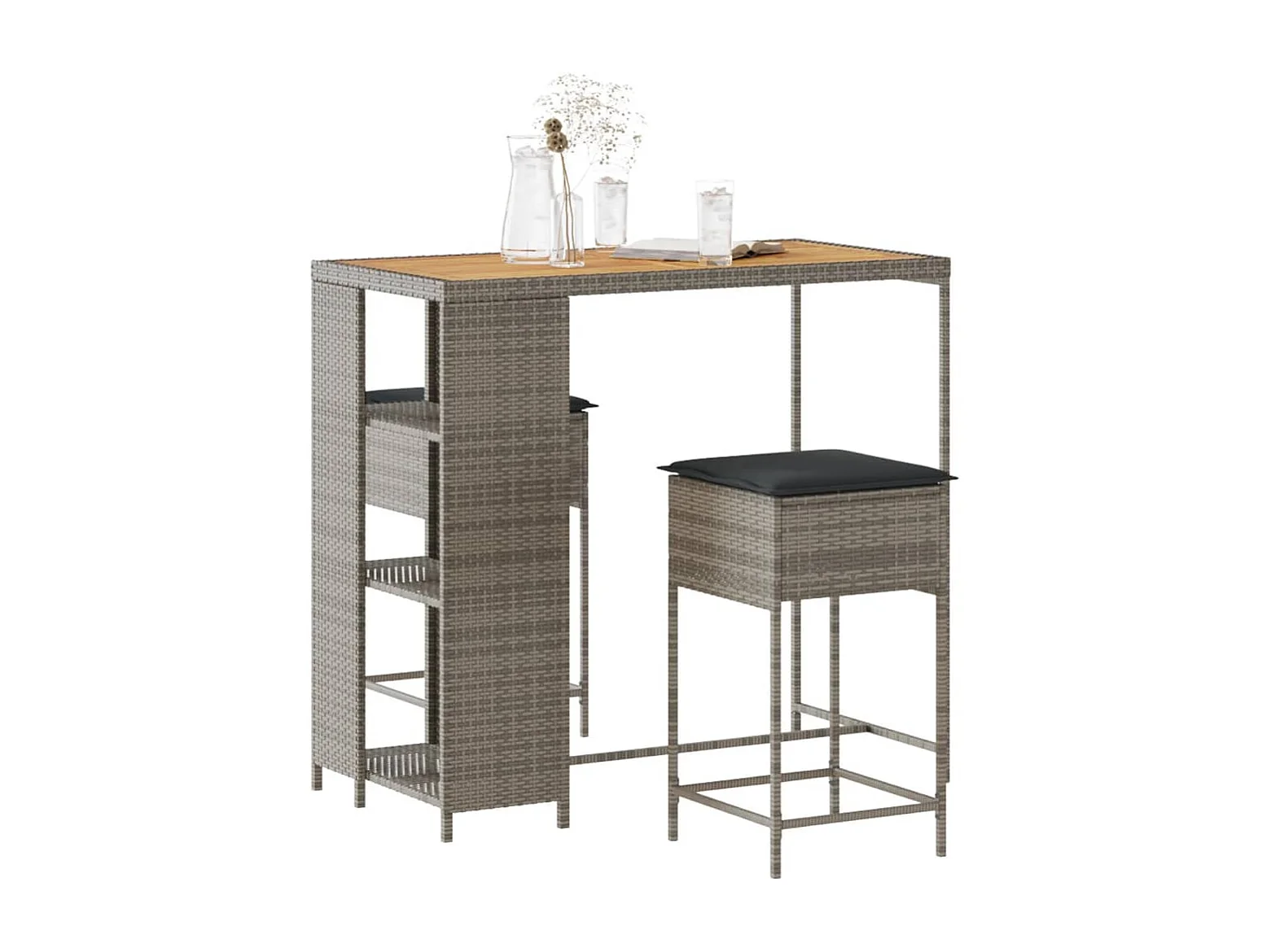 Kella Ensemble de bar de jardin 3 pcs et coussins gris résine tressée