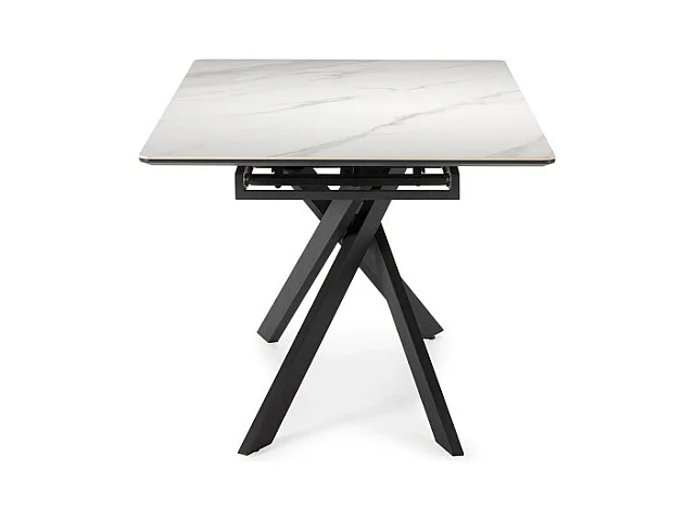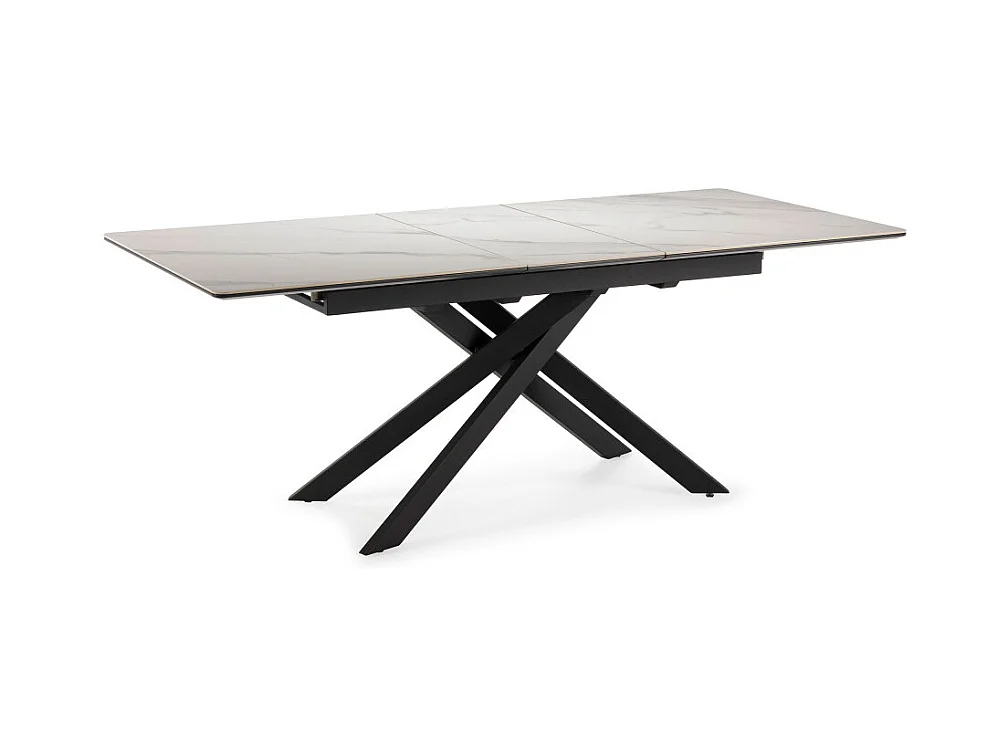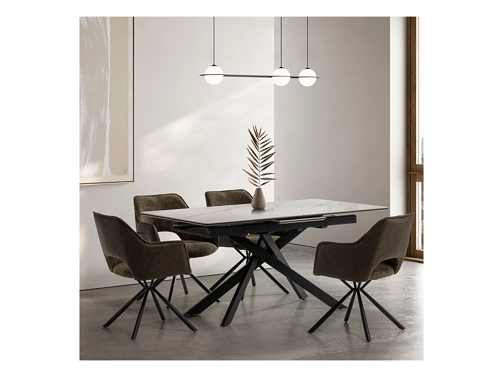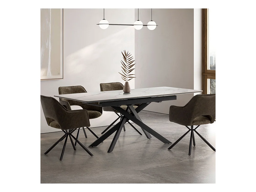 Kelmor - Table à manger extensible 6 à 8 personnes en céramique et métal 160-200x89,5cm - Blanc