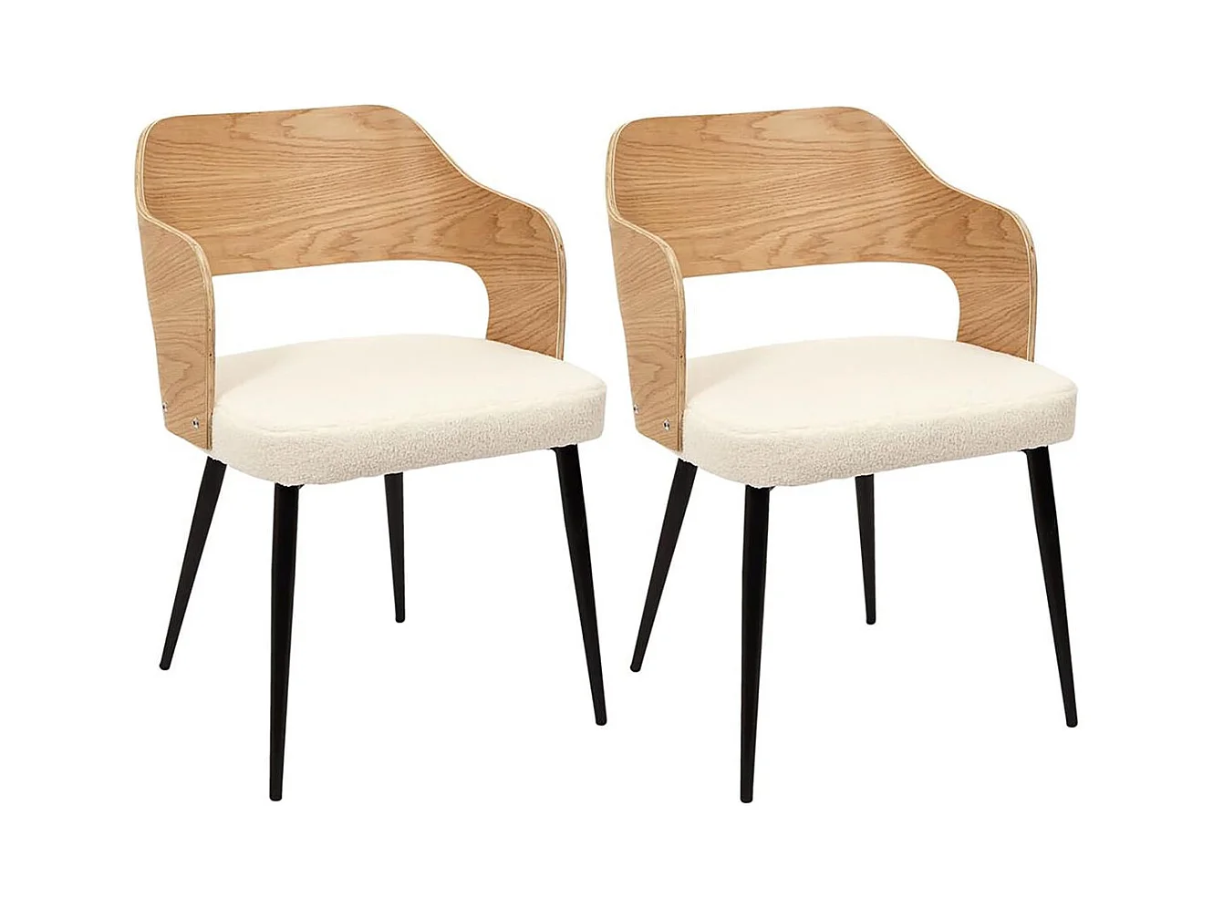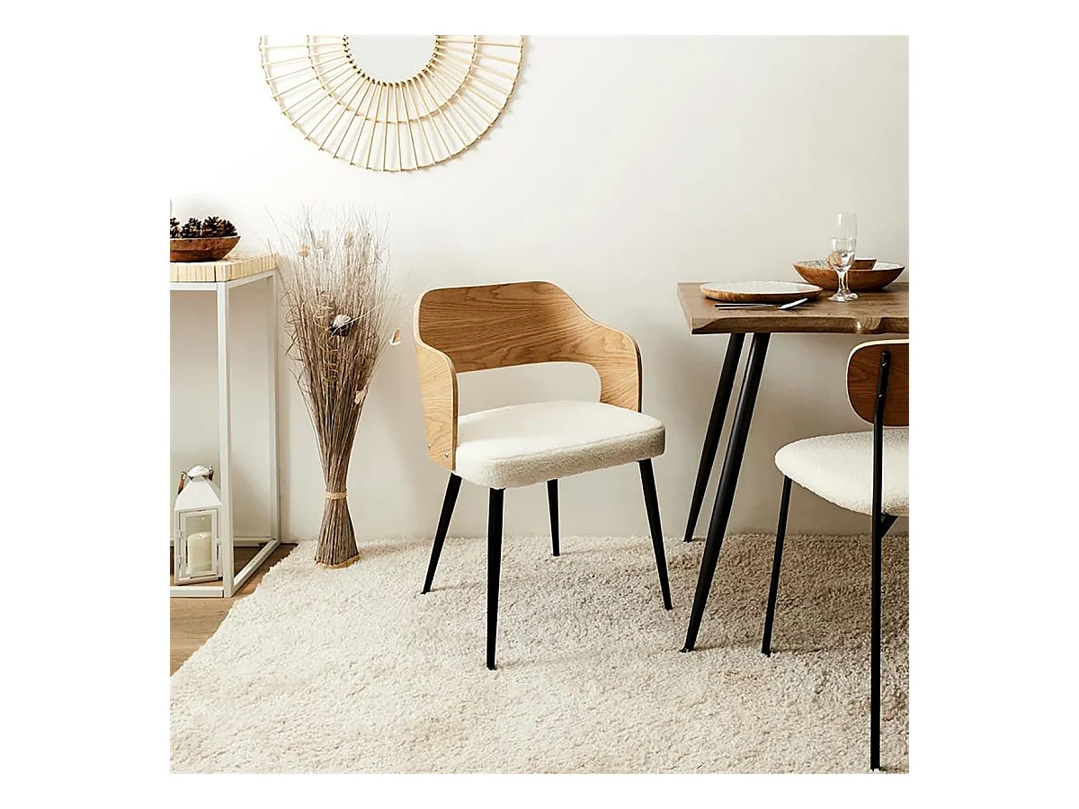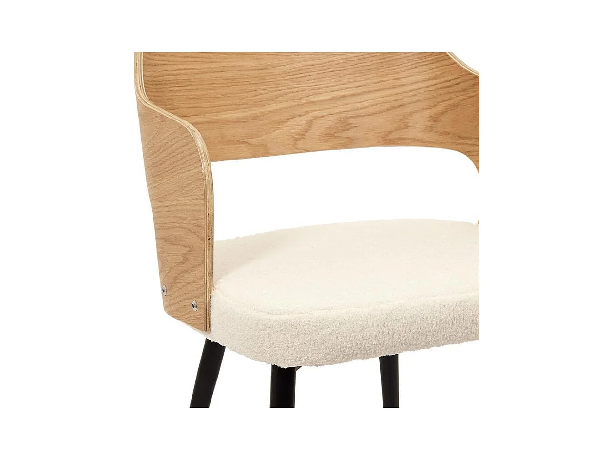 KILPA - Lot de 2 Fauteuils Bois et Métal Assise en Tissu Bouclettes