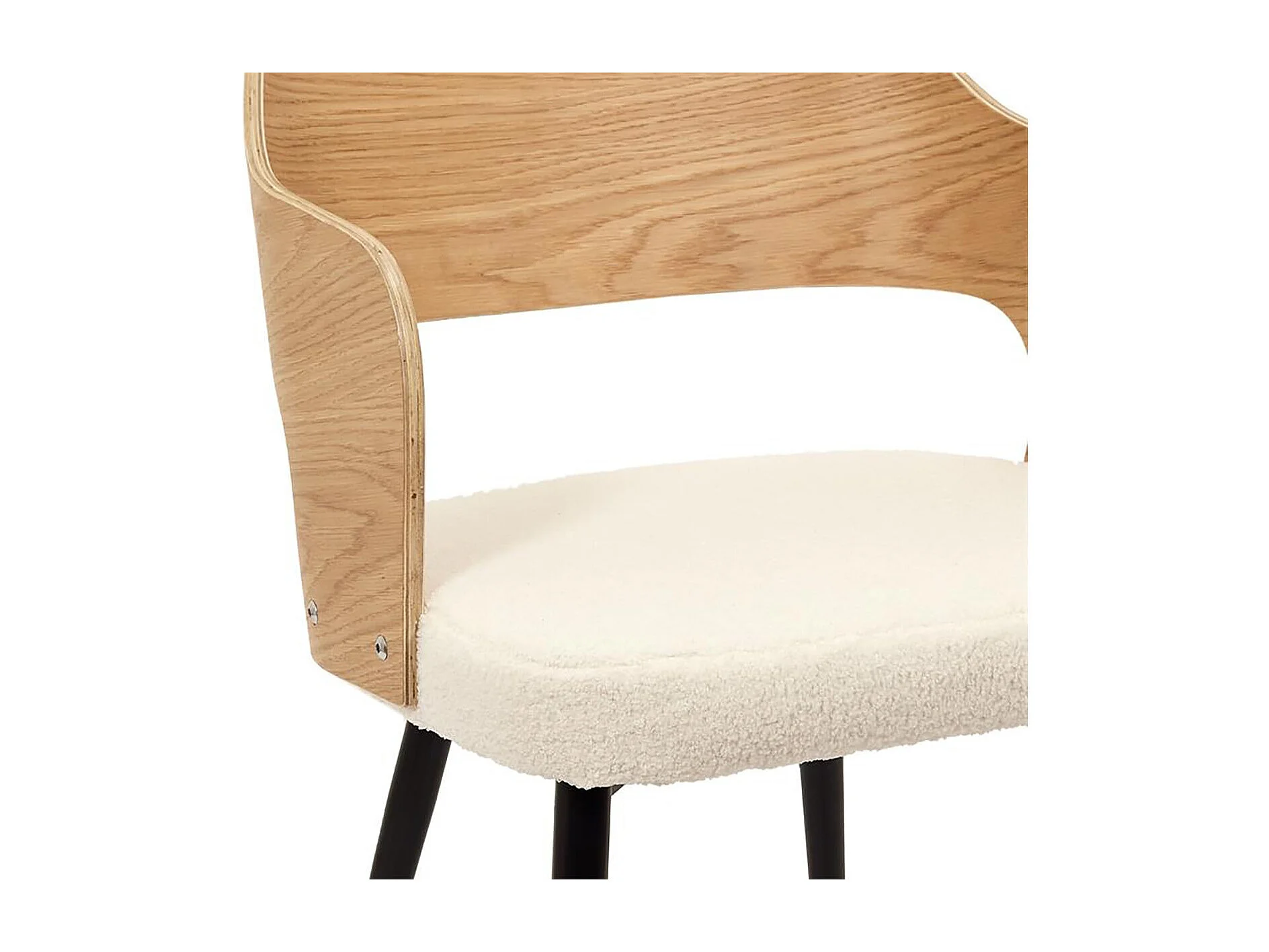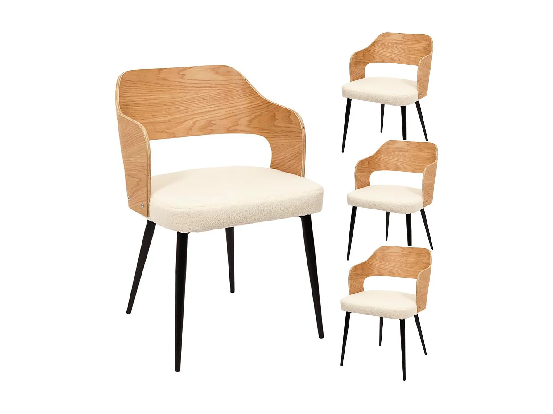 KILPA - Lot de 4 Fauteuils Bois et Métal Assise en Tissu Bouclettes