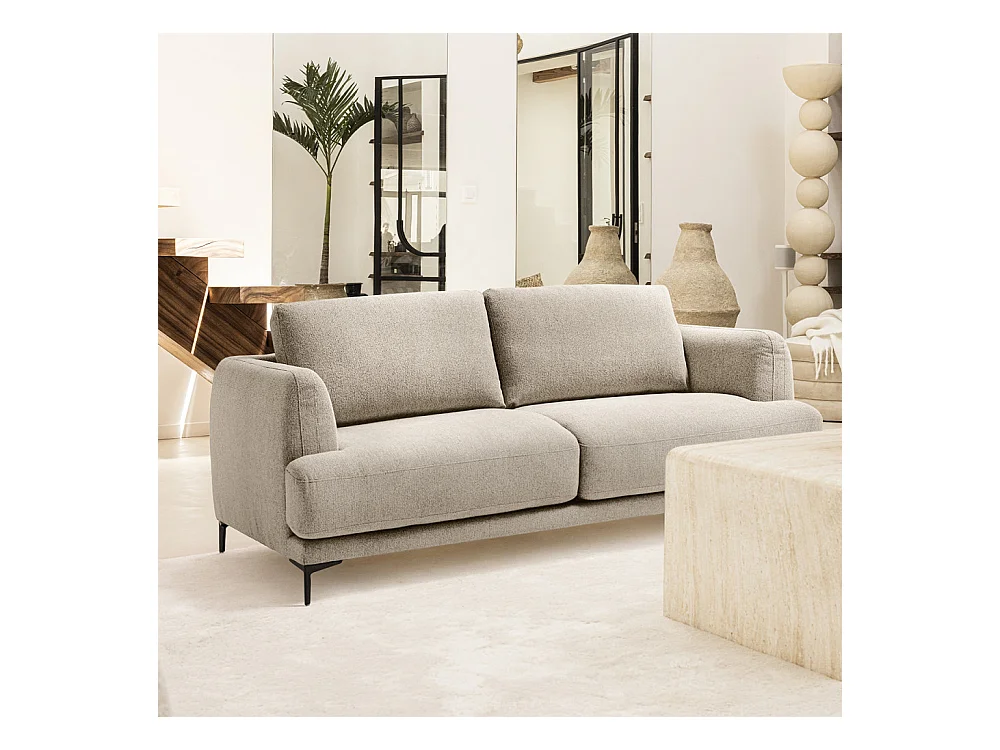 Kinna - Canapé droit 3 places en tissu et pieds en métal - Naturel chiné