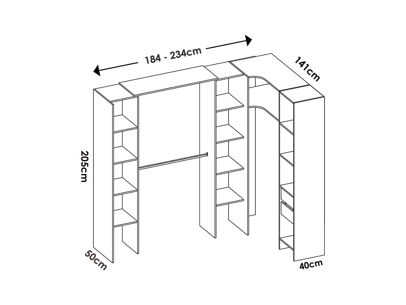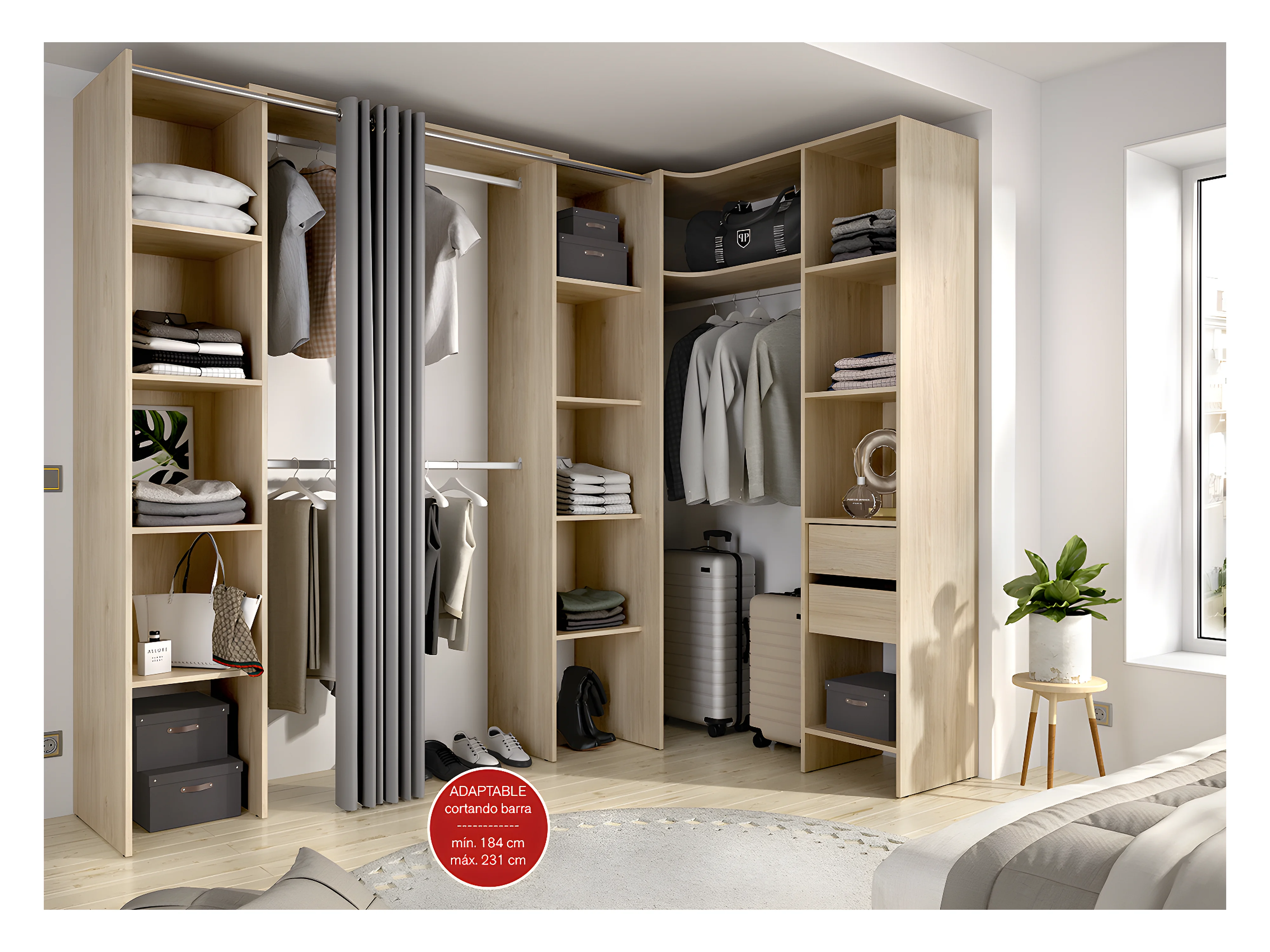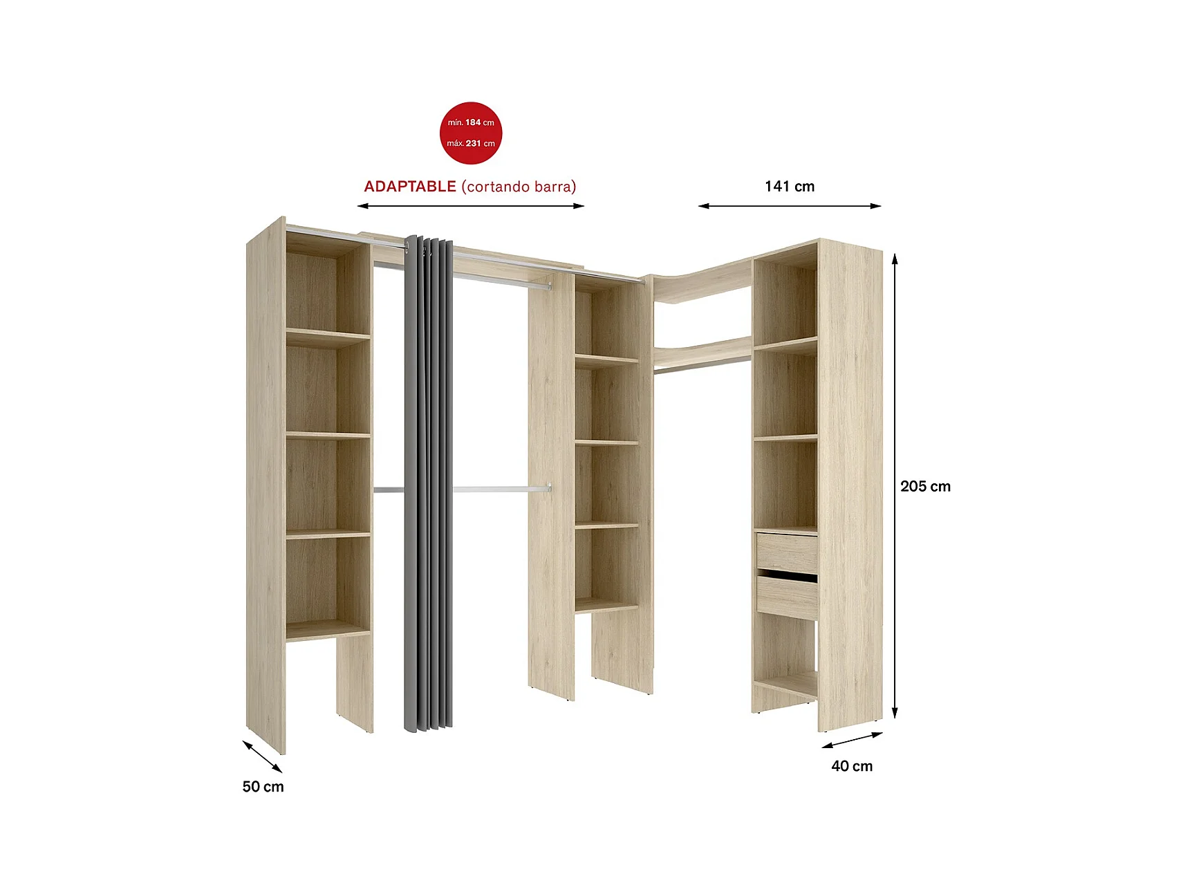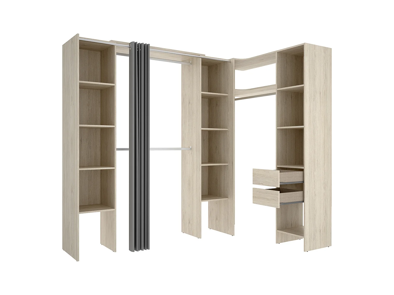 Kit armoire dressing d'angle extensible en bois mélaminé coloris chêne naturel - Longueur 164-234 x Profondeur 141 x Hauteur 205 cm