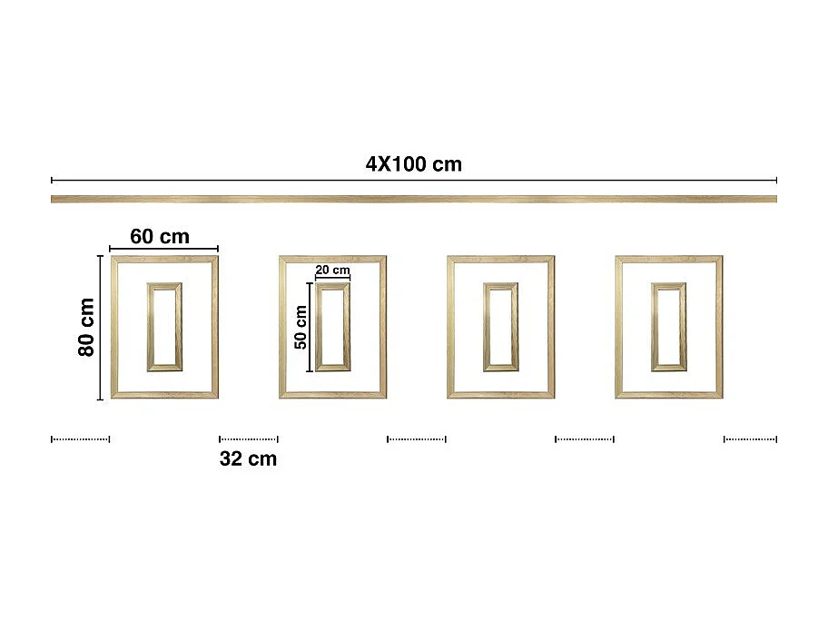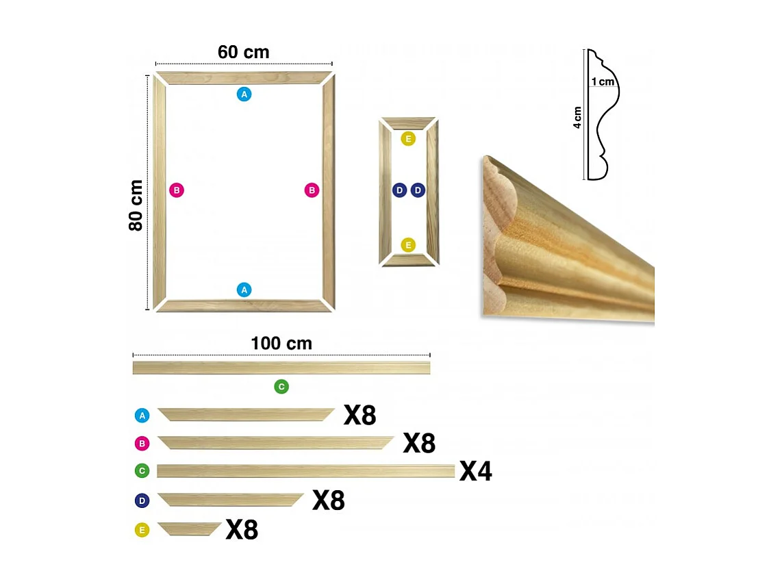 Kit de 4 moulures murales en bois Pin des Landes - Prêt à coller et peindre - Antoinette - 4 mètres