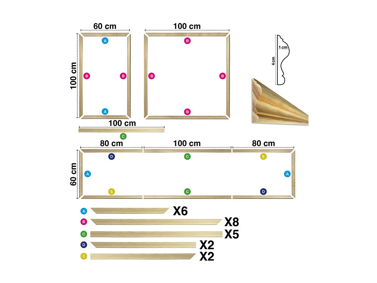 Kit de 4 moulures murales en bois Pin des Landes - Prêt à coller et peindre - Blandine - 3 mètres
