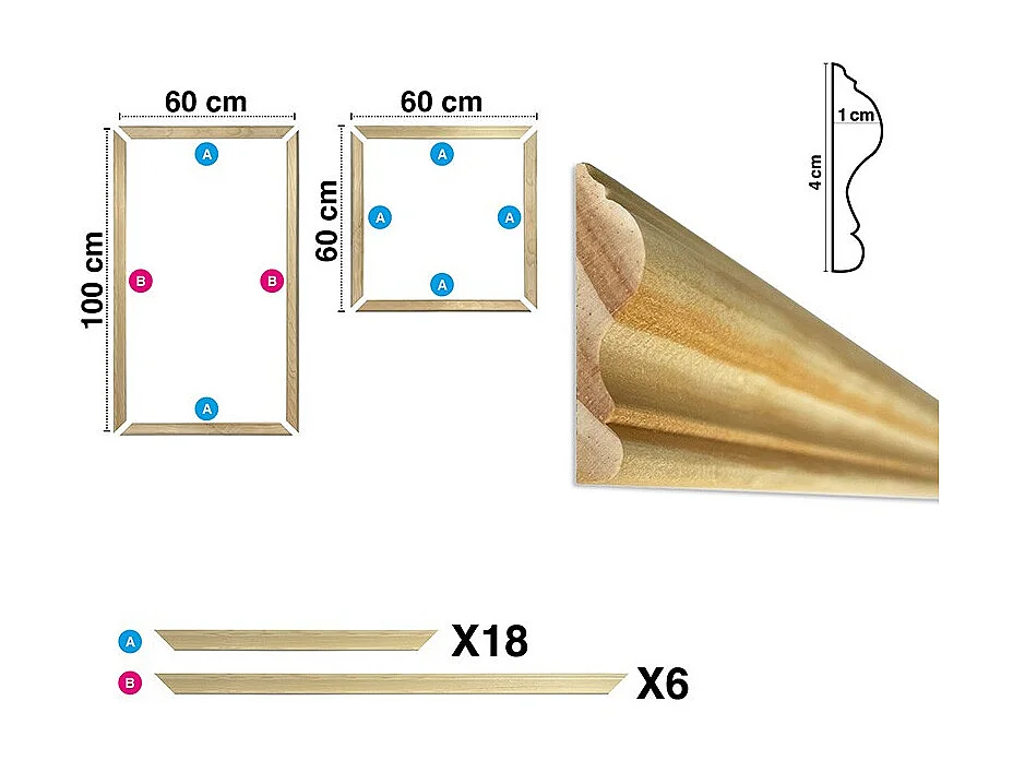 Kit de 4 moulures murales en bois Pin des Landes - Prêt à coller et peindre - Blandine - 3 mètres