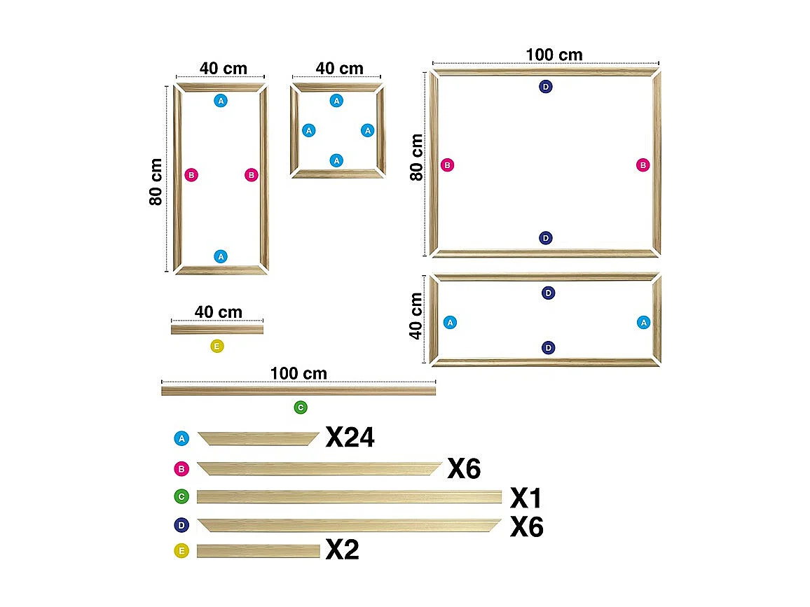 Kit de 6 moulures murales en bois Pin des Landes - Prêt à coller et peindre - Apolline - 3 mètres