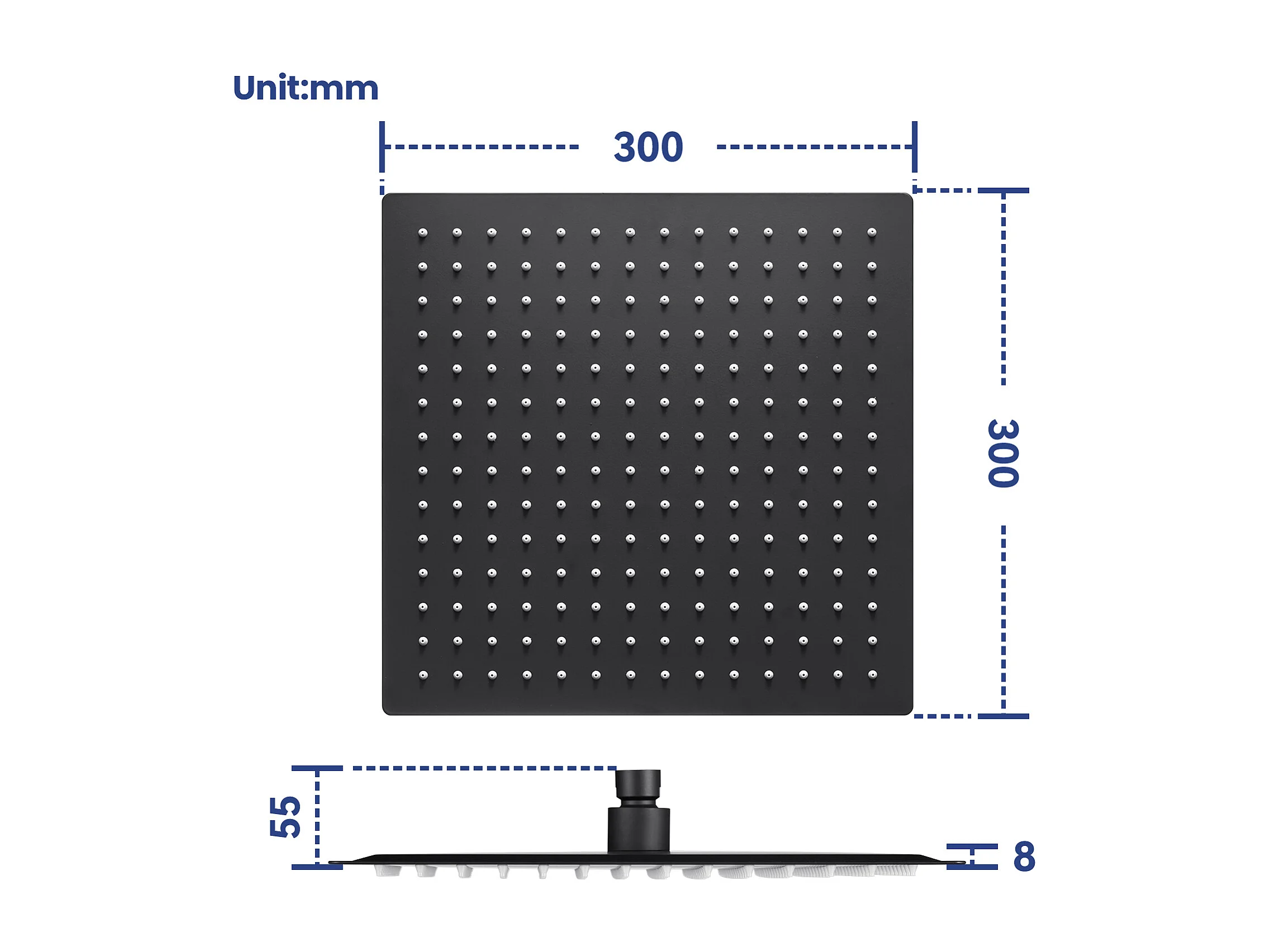 Kit de douche Pommeau de douche Douche de tête Carrée 30cm