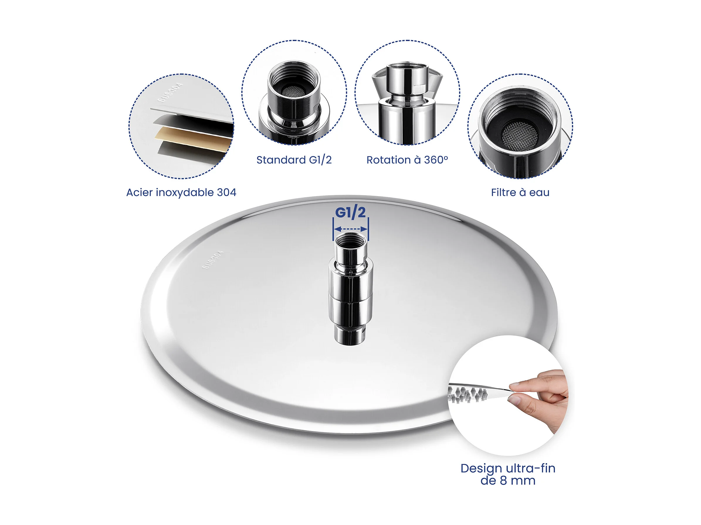 Kit de douche Pommeau de douche Douche de tête Rond 30cm