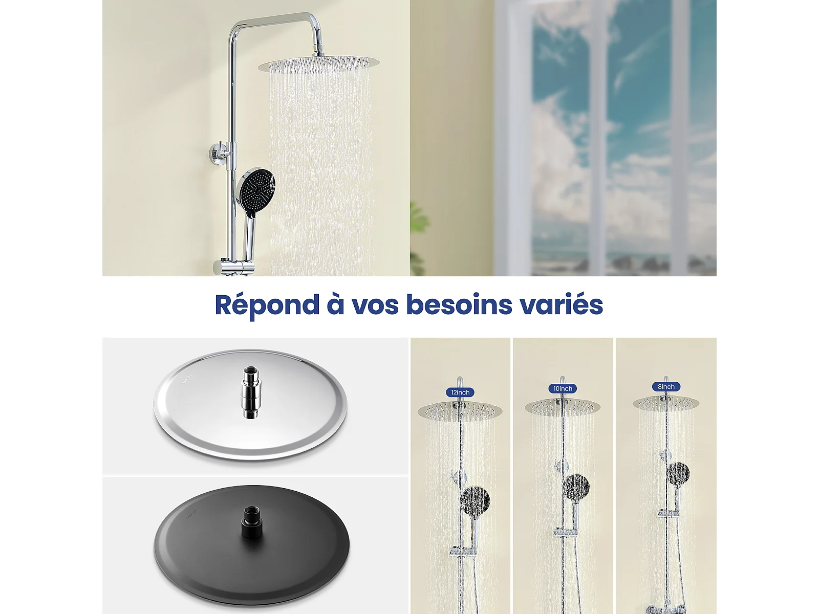 Kit de douche Pommeau de douche Douche de tête Rond 25cm