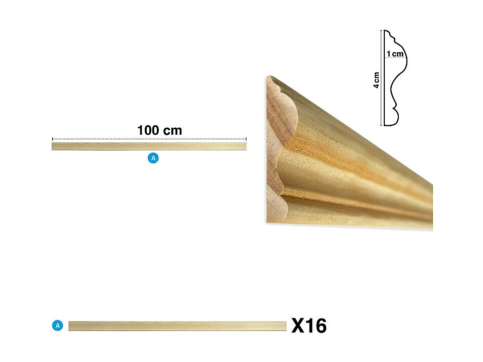 Kit de 4 moulures murales en bois Pin des Landes - Prêt à coller et peindre - Florine - 4 mètres