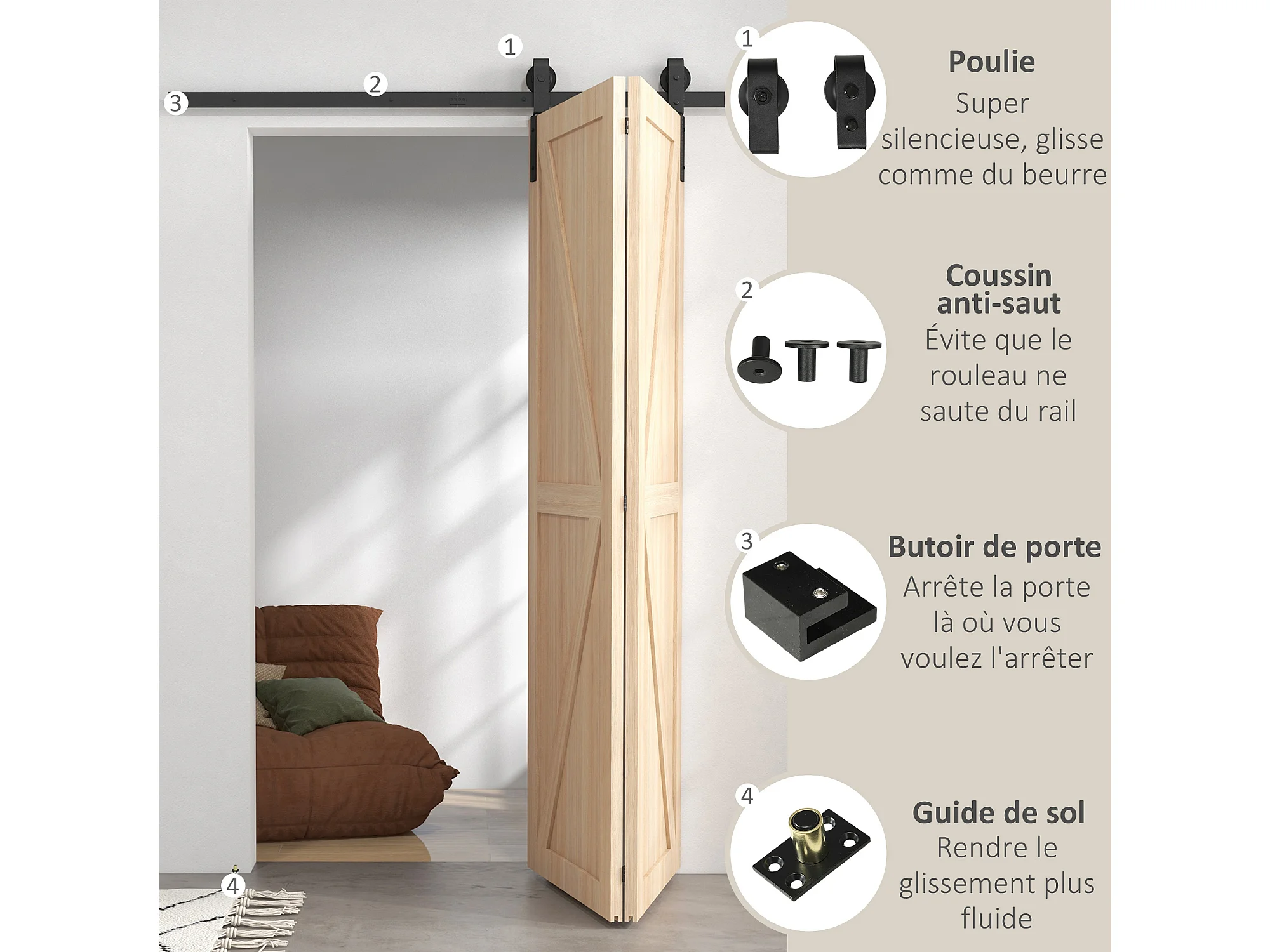Kit de porte coulissante système galandage pour porte épaisseur 40-55 mm longueur rail 2,44 m charge max. 90 Kg acier au carbone noir