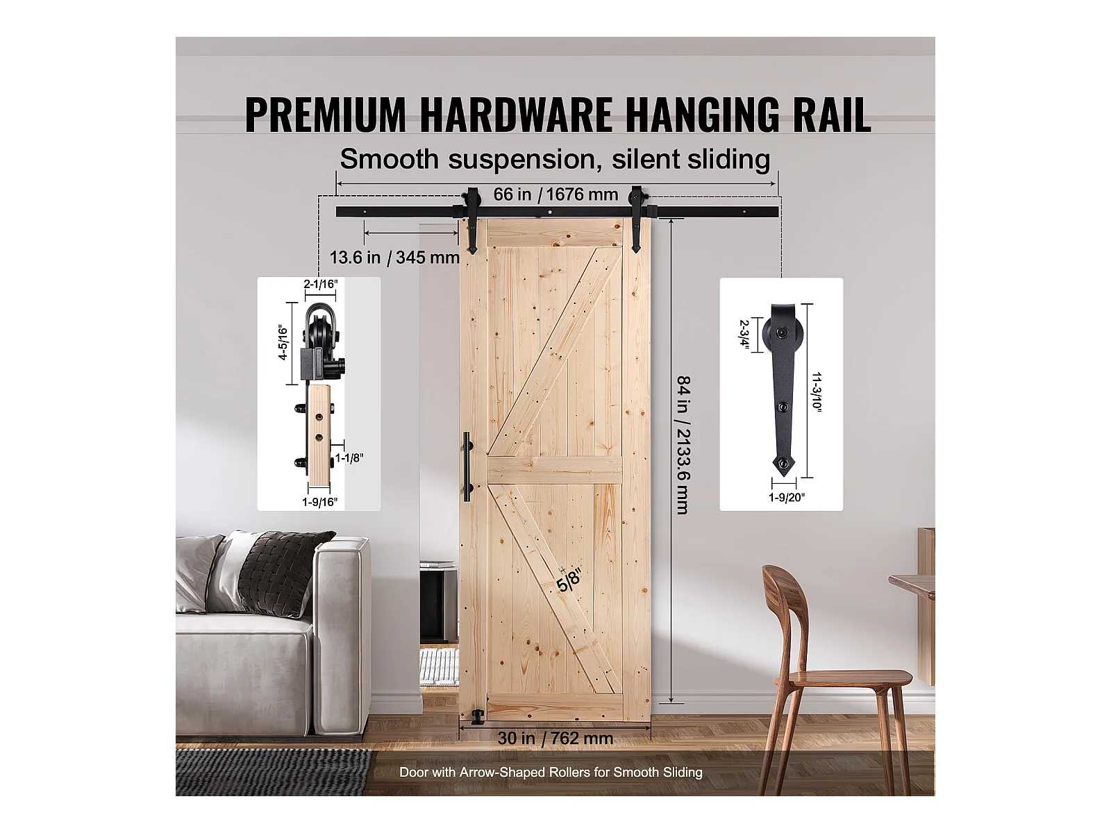 Kit de Porte SucceBuy de Grange et de Quincaillerie Kit de Porte de Grange Coulissante en Bois de 76.2Cm x213.3Cm en Douceur