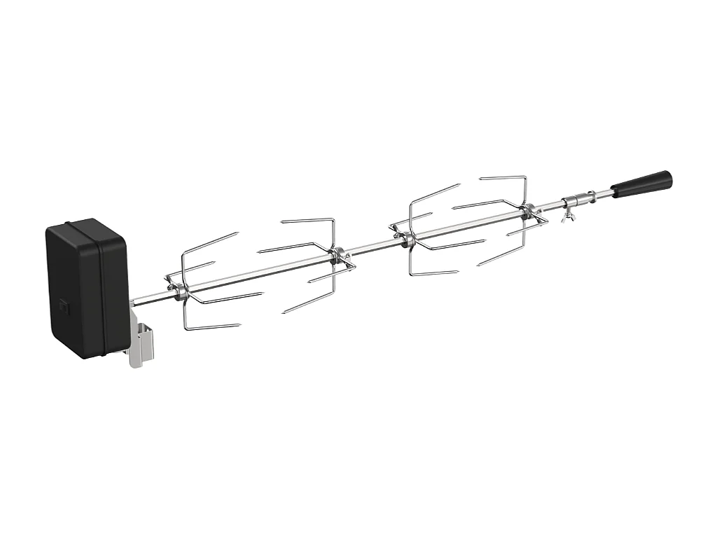 Barbecue rond avec plaque de cuisson et de gril en acier et planche en bois