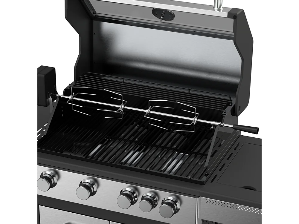 Grand barbecue avec armoire et plaque de cuisson en acier