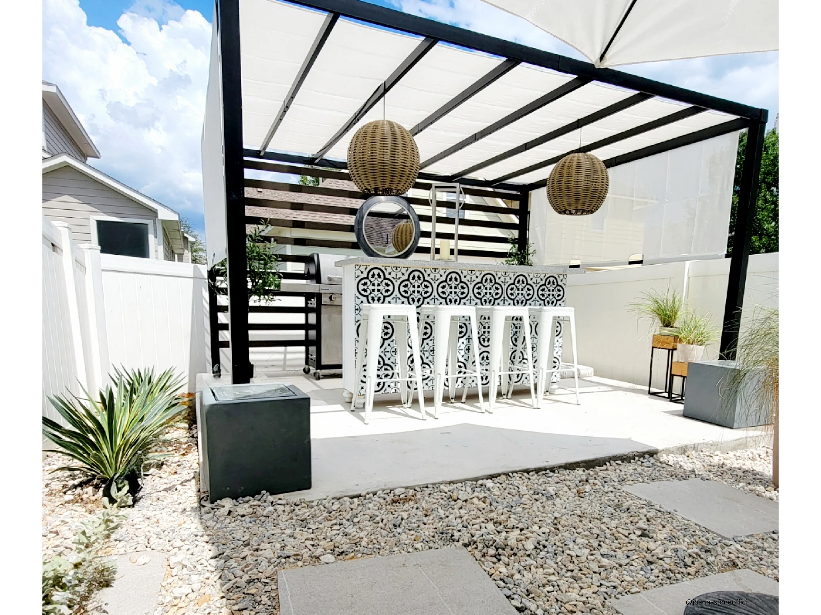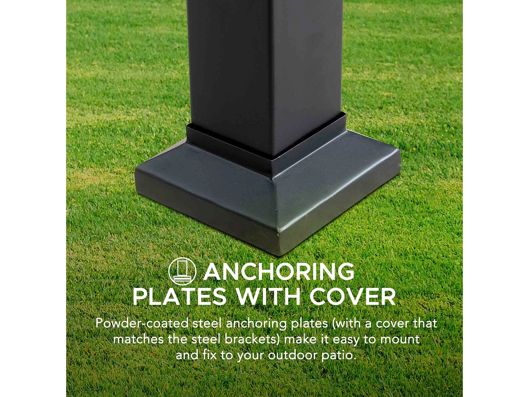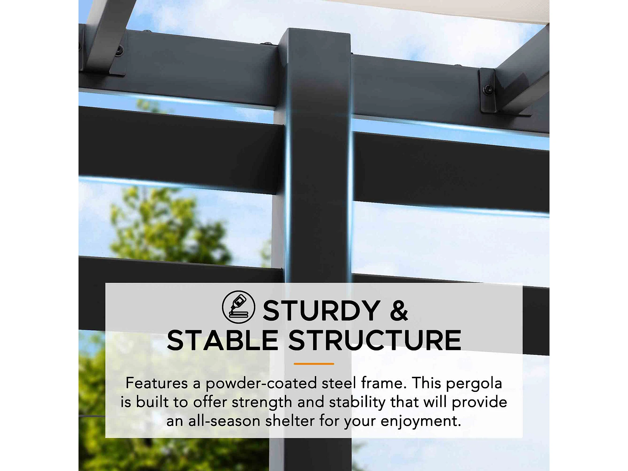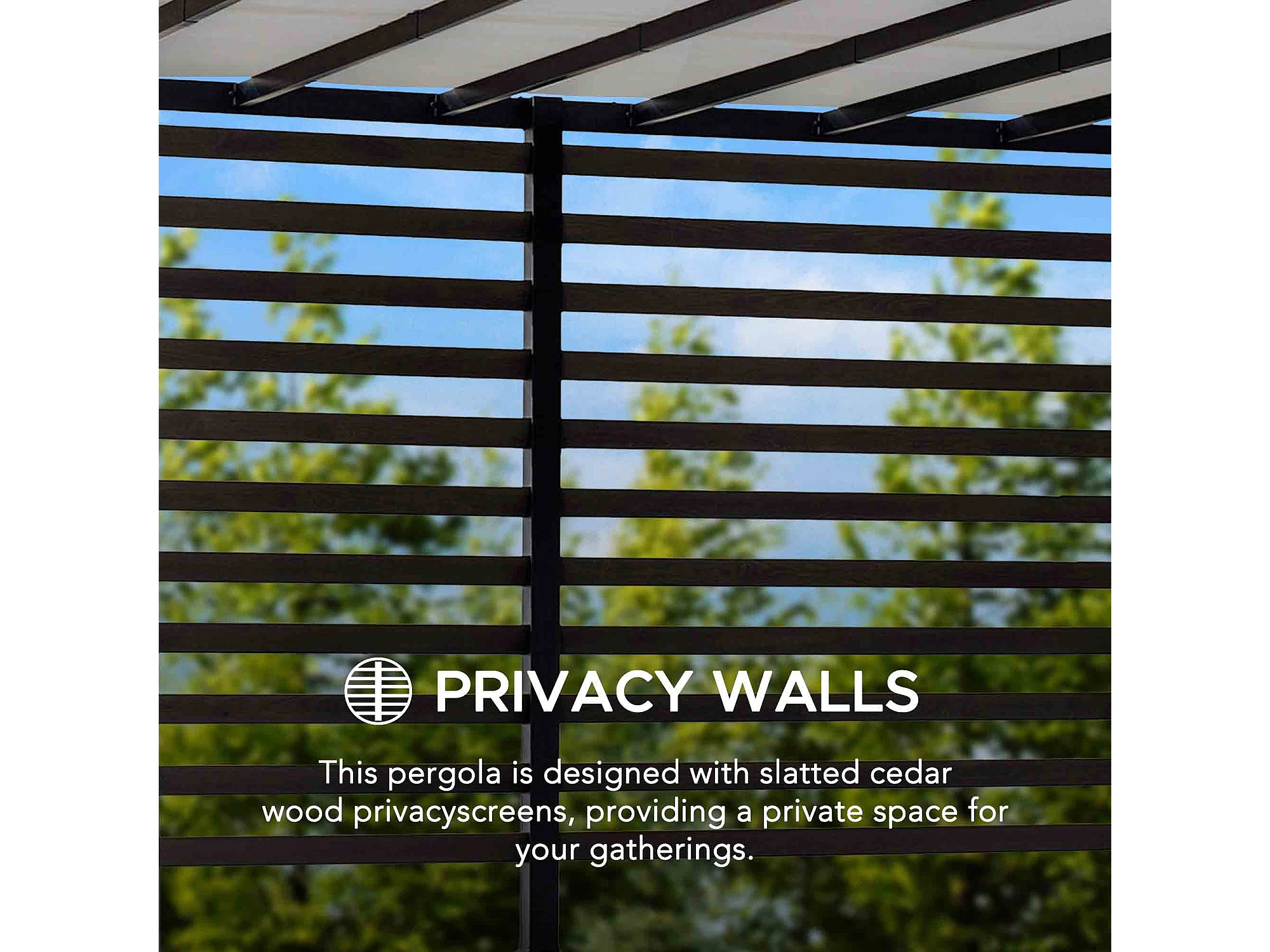 Kit pergola en acier avec auvent réglable blanc et mur d'intimité OETA 304 cm x 372 cm