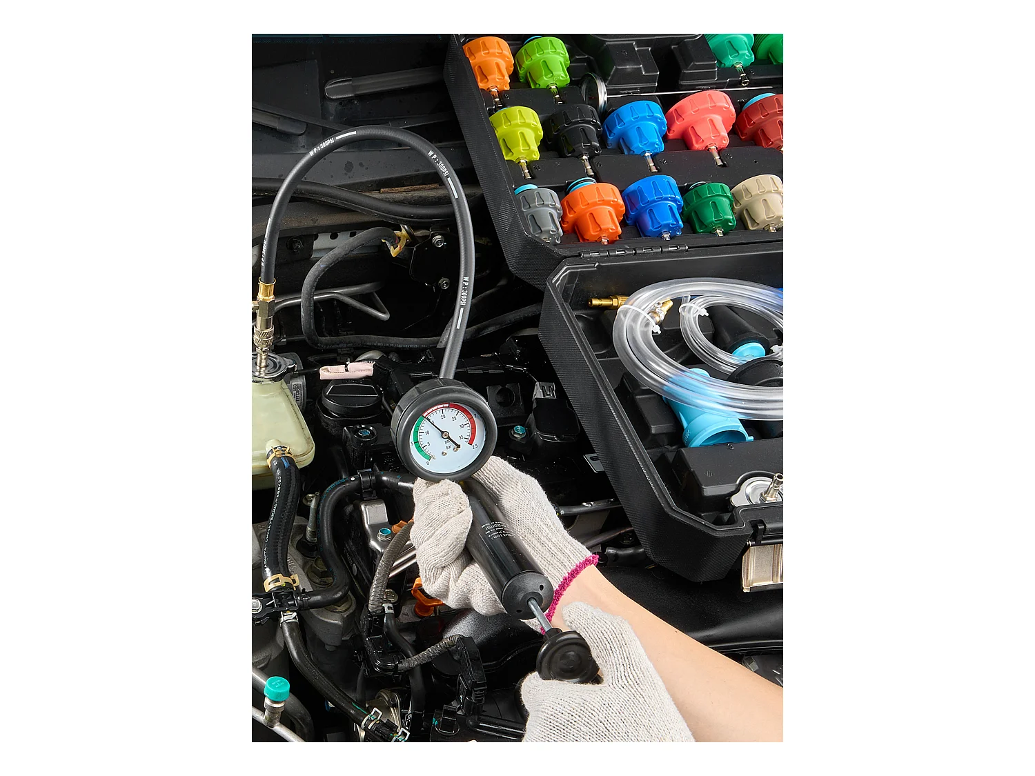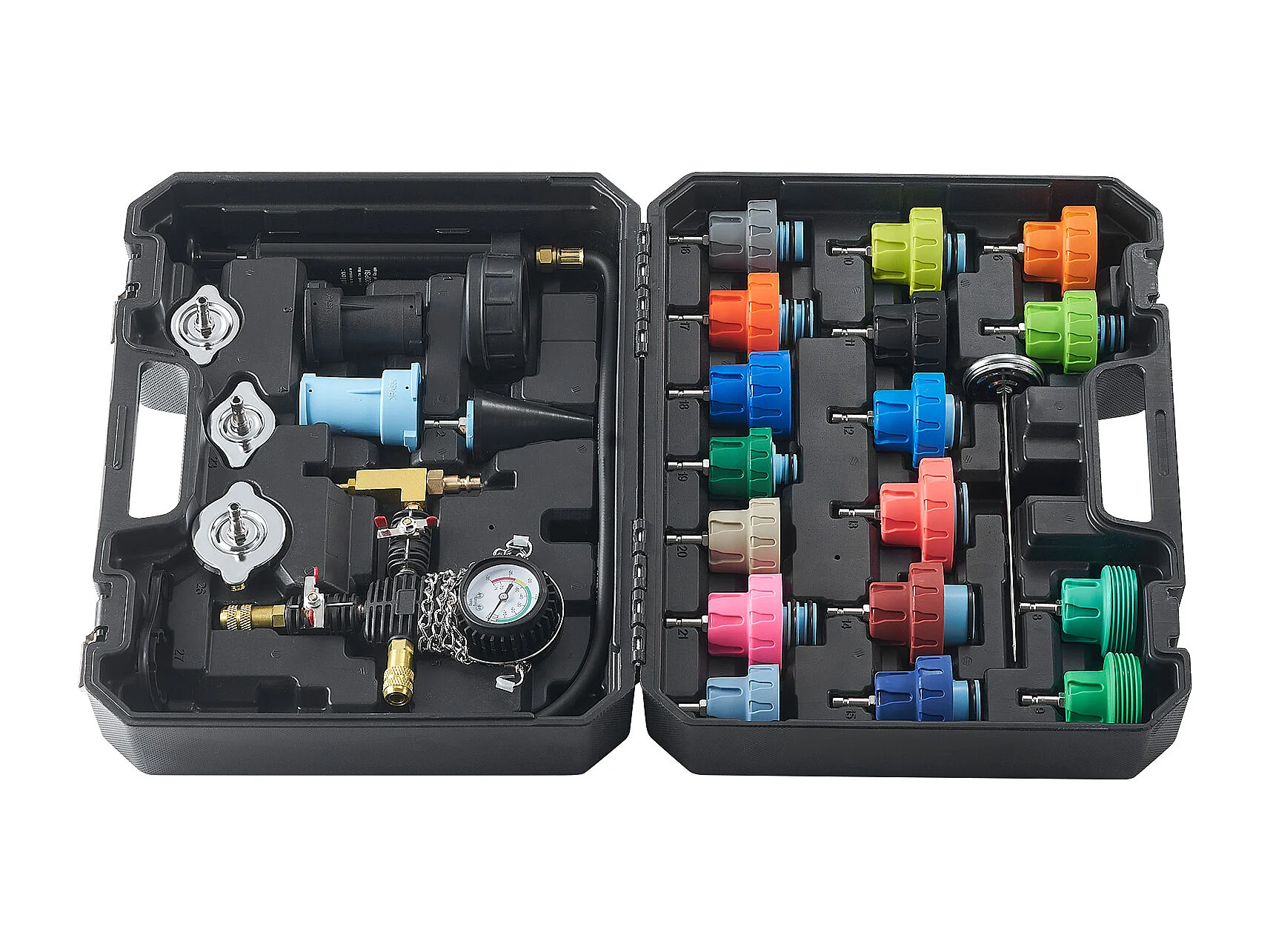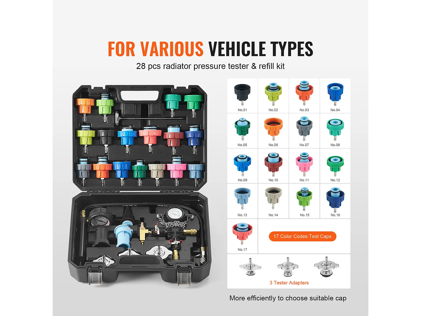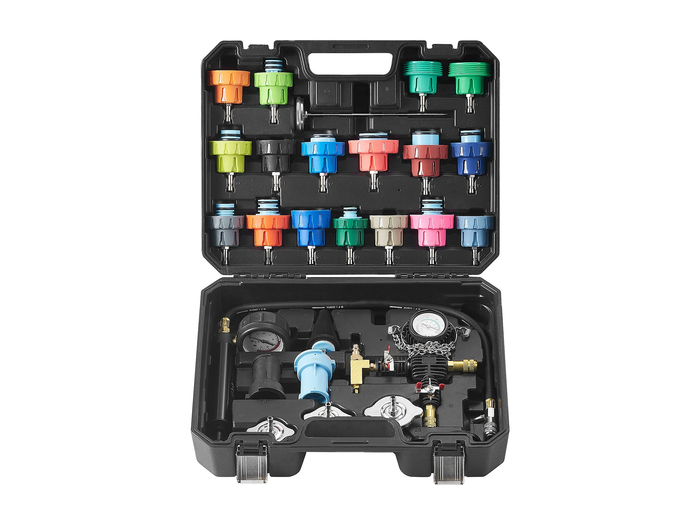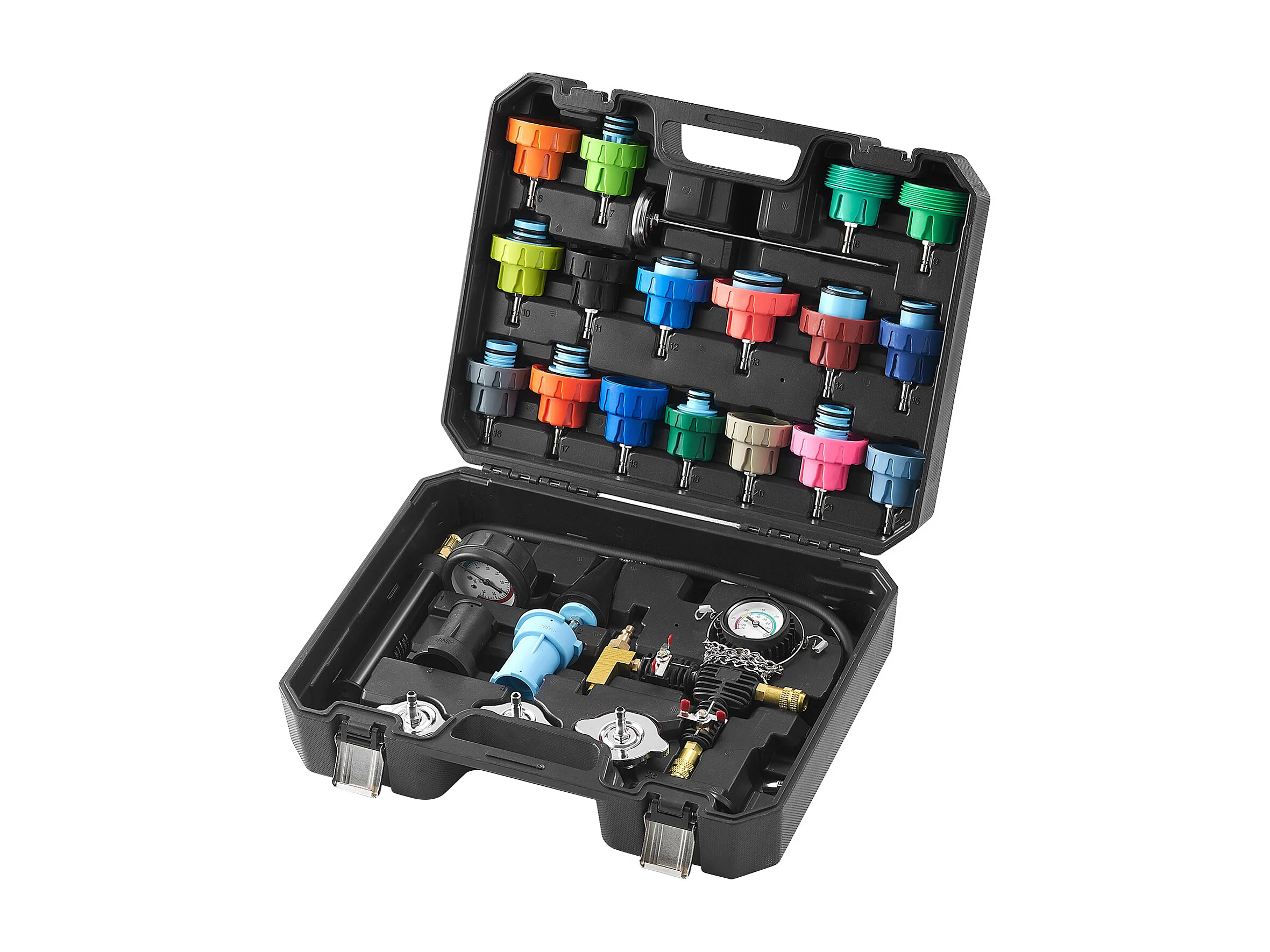 Kit Testeur de Pression, SucceBuy Kit de Testeur de Pression de Radiateur 28 Pièces, Aspirateur et Recharge de Liquide de Refroidissement, Adaptateurs