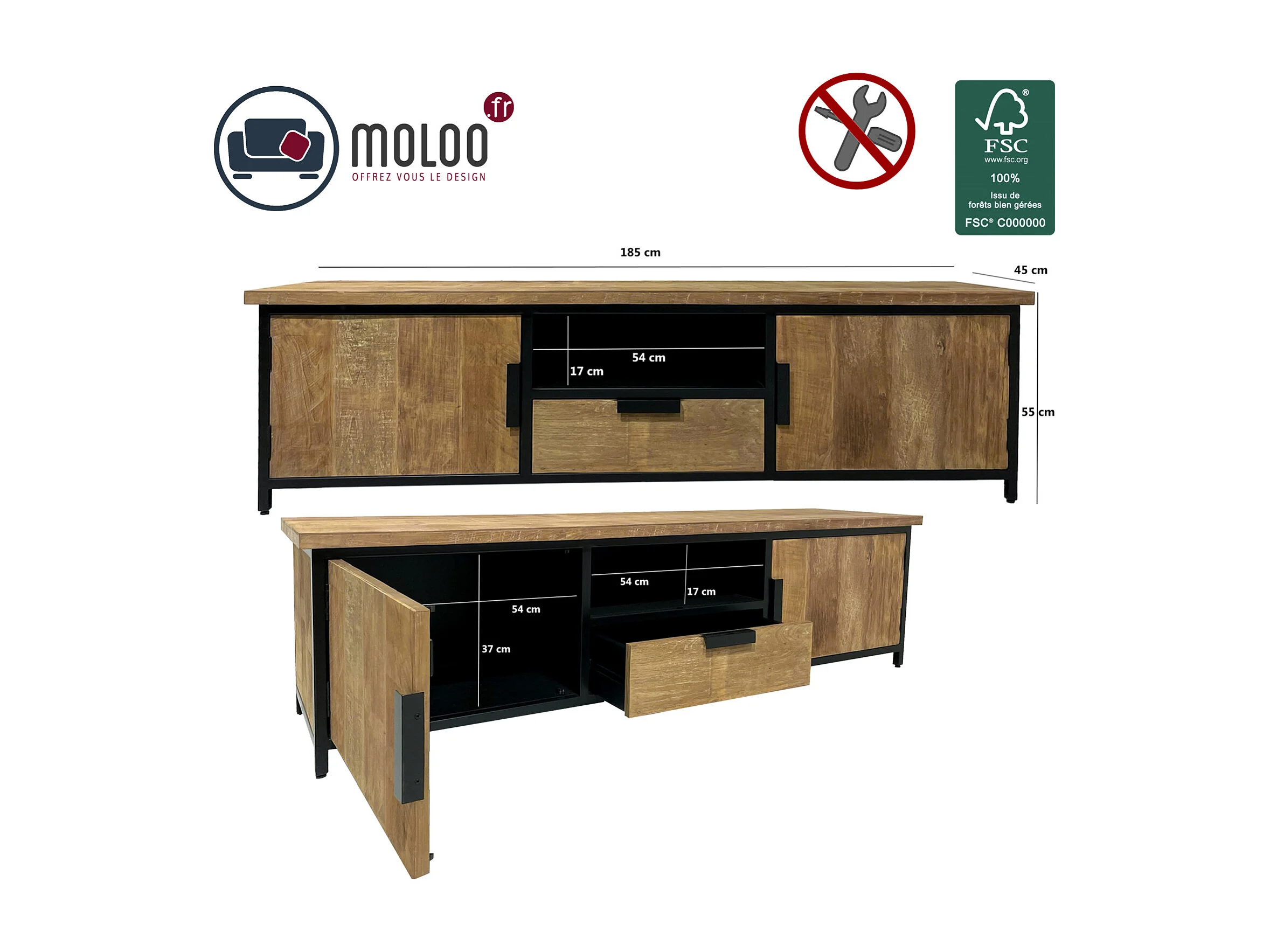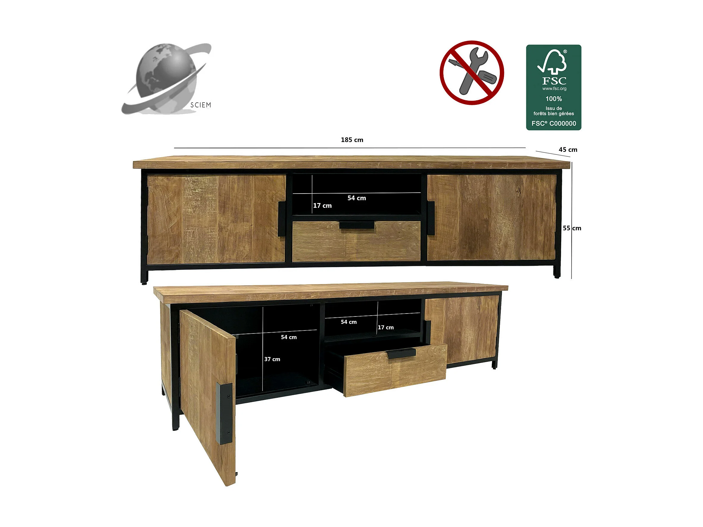 KKOPEN-Meuble TV 180 cm enTeck recyclé