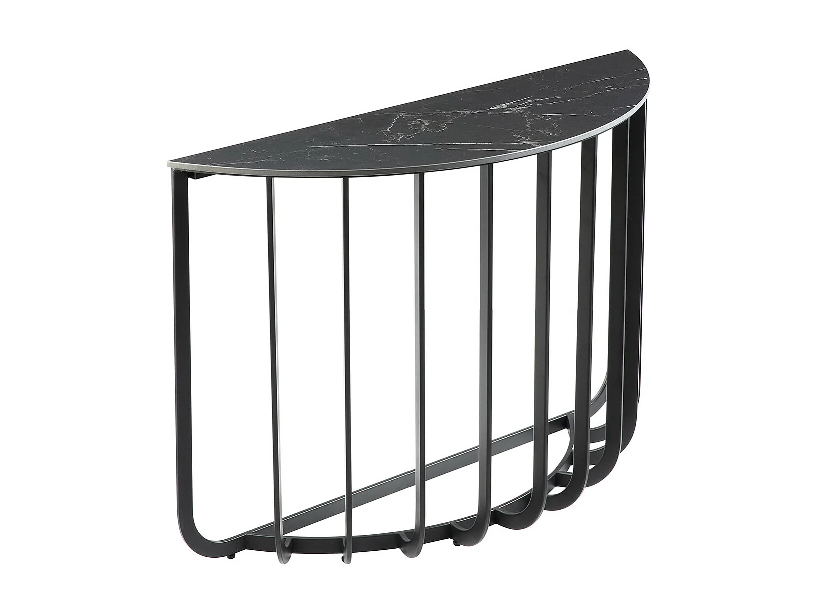 KLODIE - Console Demi-Lune Plateau Céramique Marbré Cadre Métal Gris Anthracite