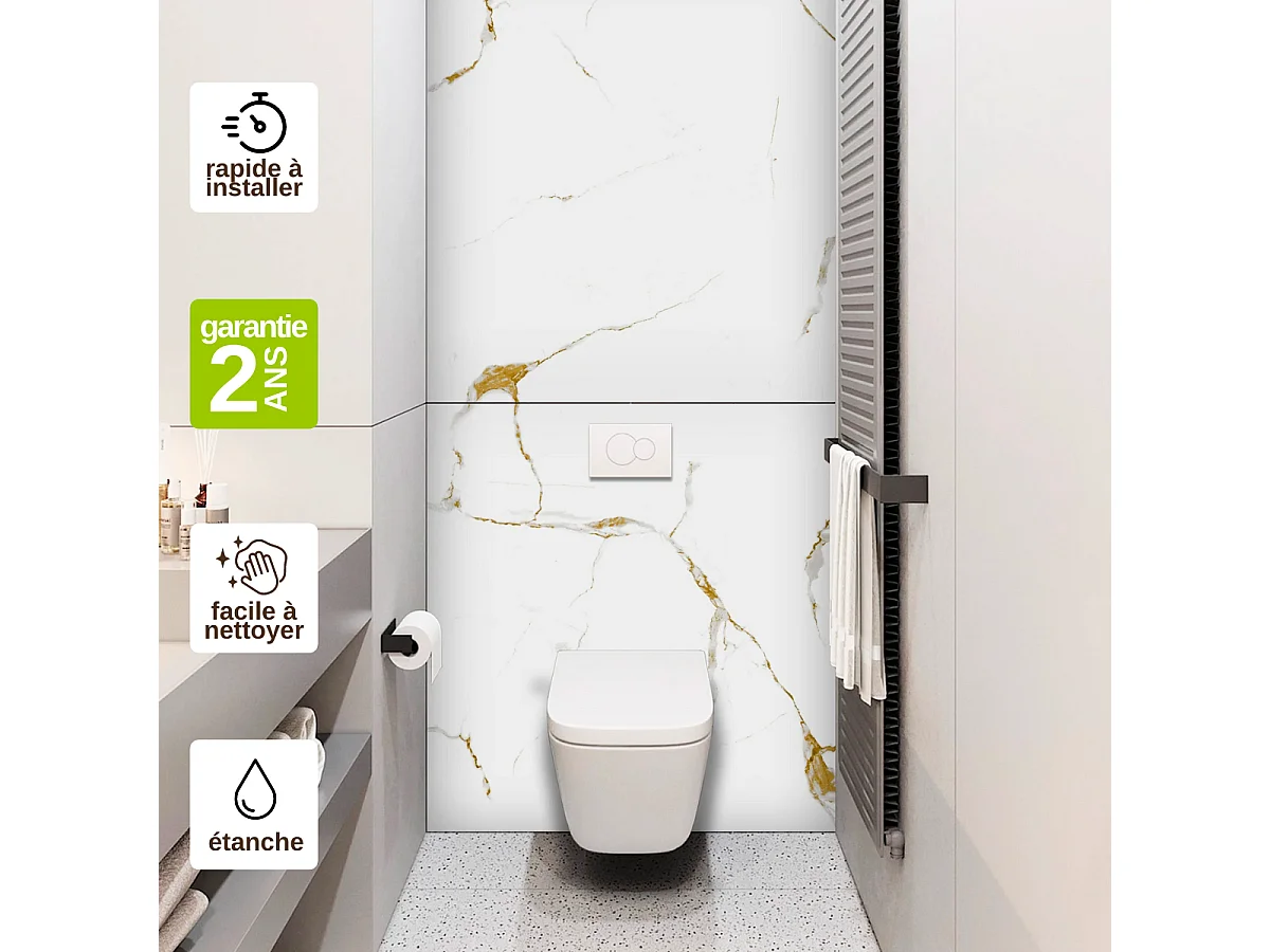 Panneau Habillage WC suspendu , L120*l120*0.4 cm, effet doré, Calacatta GOLD by SANIZÉO