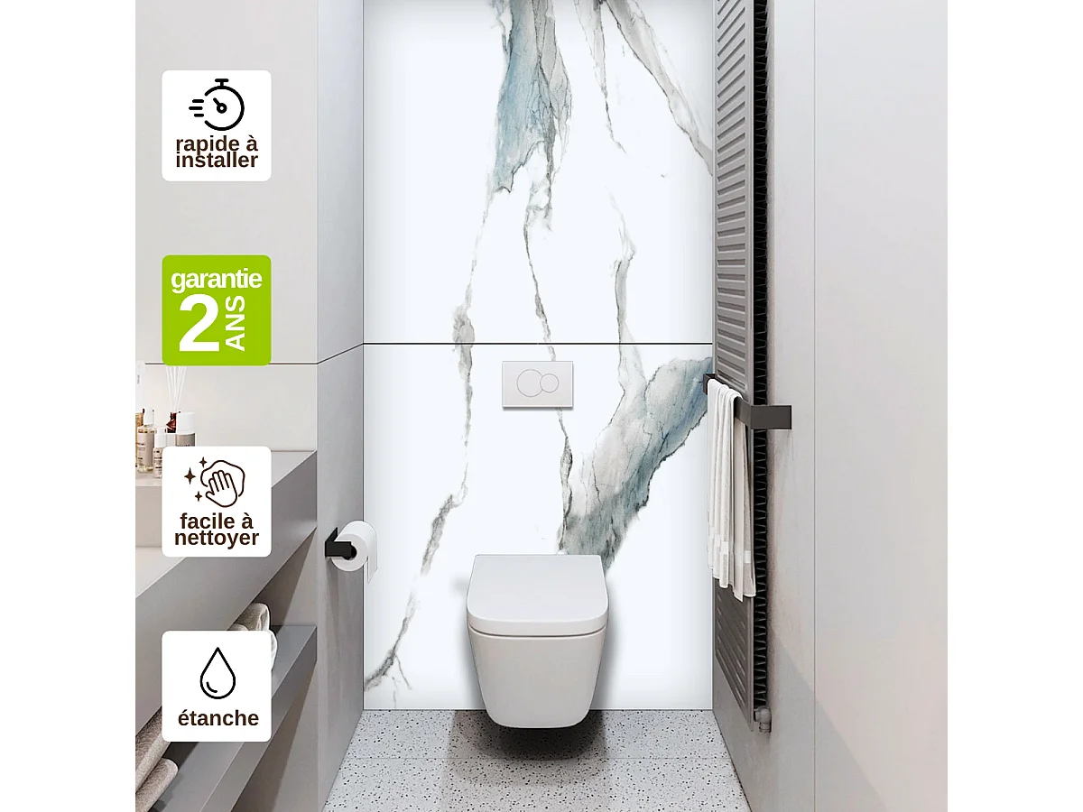Panneau Habillage WC suspendu , L120*l120*0.4 cm, effet bleu, Calacatta BLUE by SANIZÉO