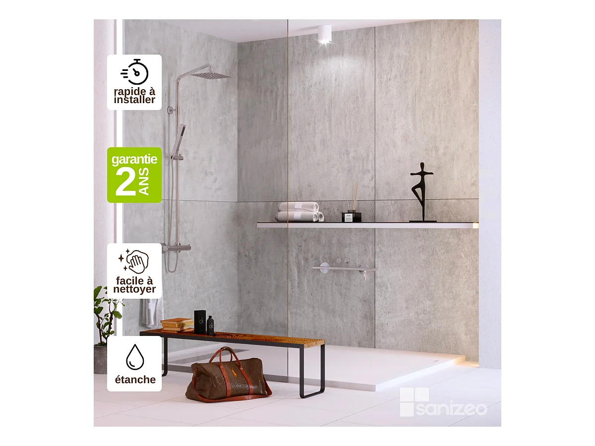 Lot de 2 Panneaux d'Habillage pour Douche et Baignoire, L120*l120*0.4 cm, effet béton, Urban Concrete by SANIZÉO