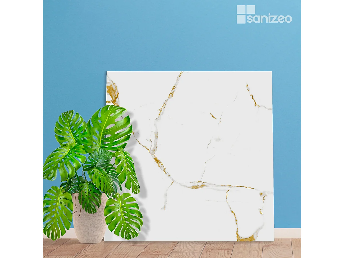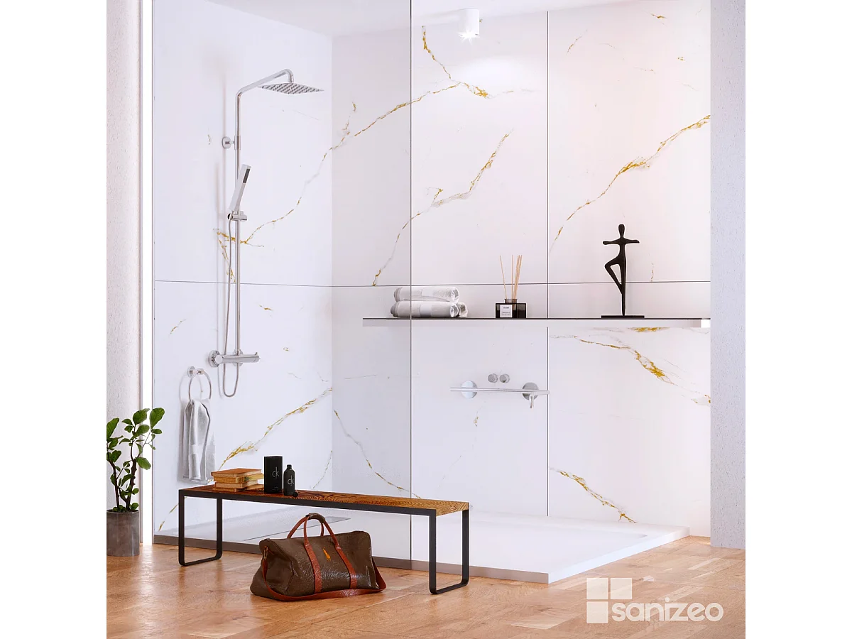 Lot de 2 Panneaux d'Habillage pour Douche et Baignoire, L120*l120*0.4 cm, effet doré, Calacatta GOLD by SANIZÉO