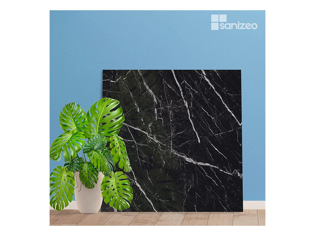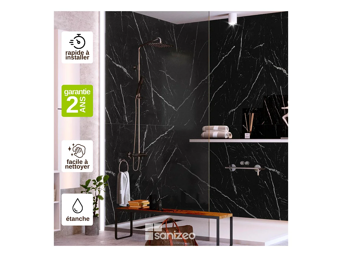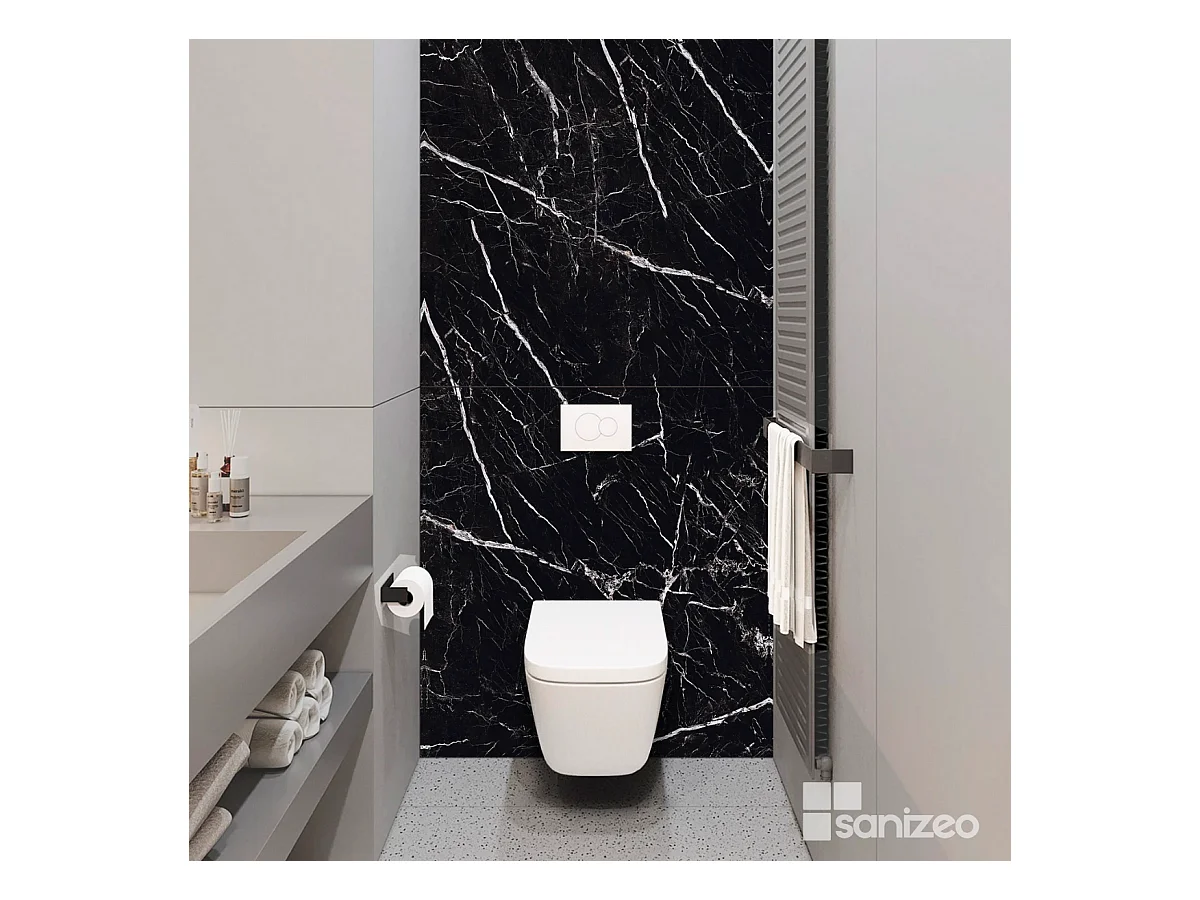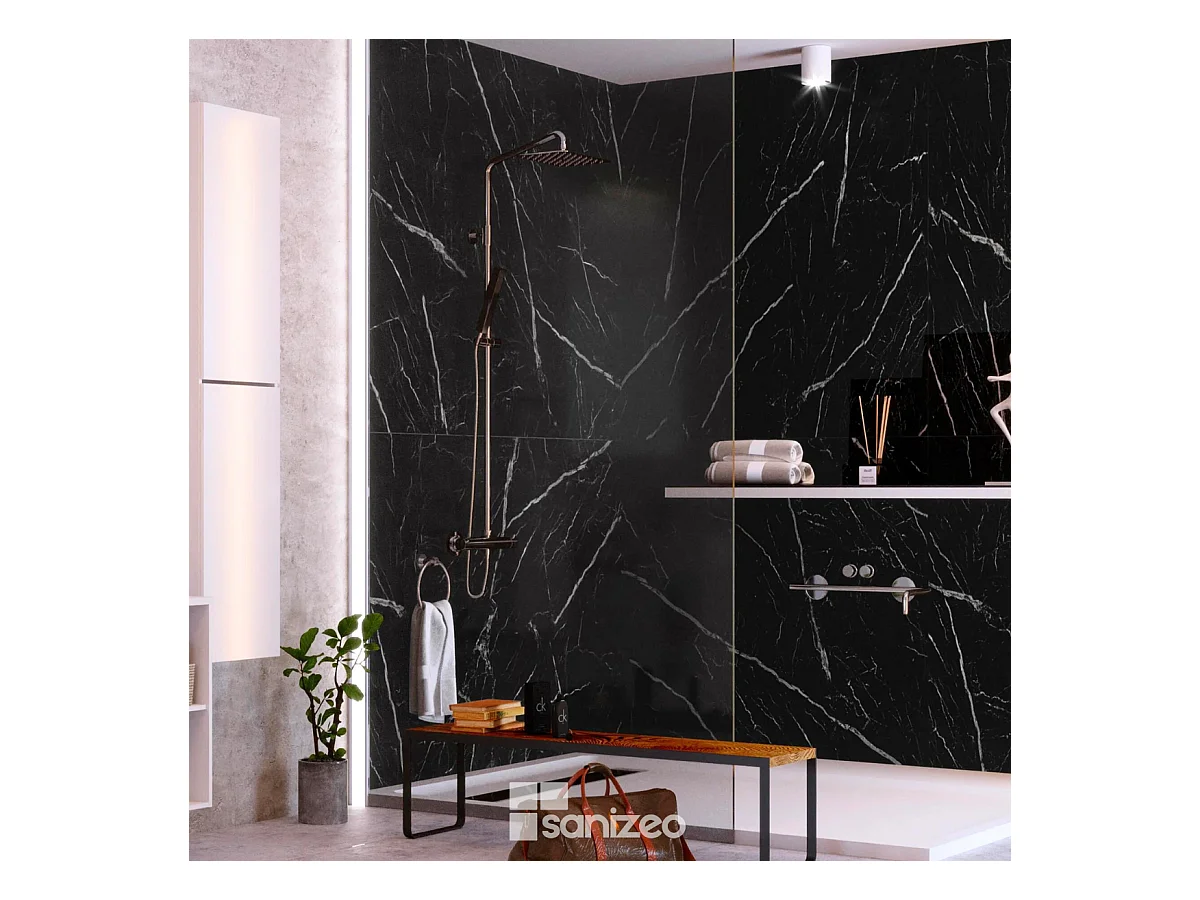 Lot de 2 Panneaux d'Habillage pour Douche et Baignoire, L120*l120*0.4 cm, effet marbre noir, Infinite Black by SANIZÉO
