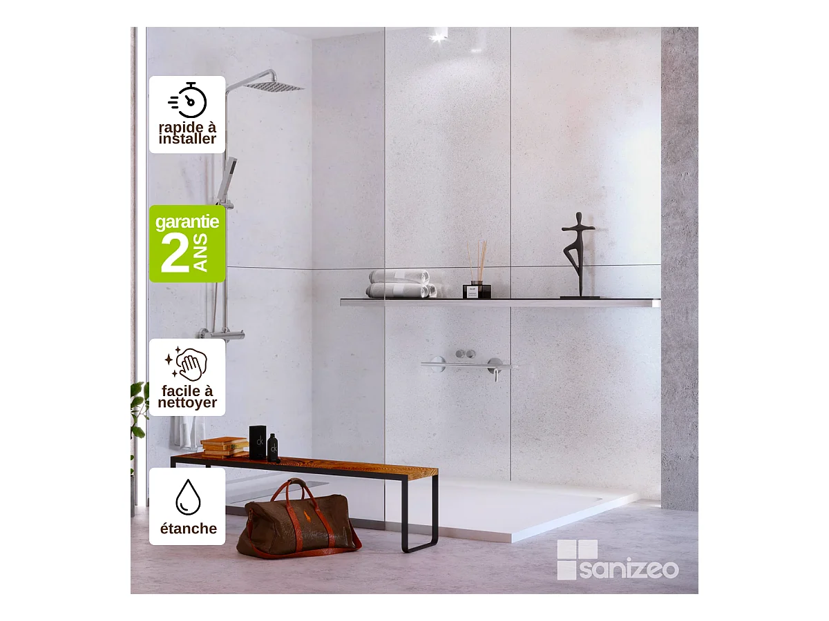 Lot de 2 Panneaux d'Habillage pour Douche et Baignoire, L120*l120*0.4 cm, effet minéral blanc, Verona White by SANIZÉO