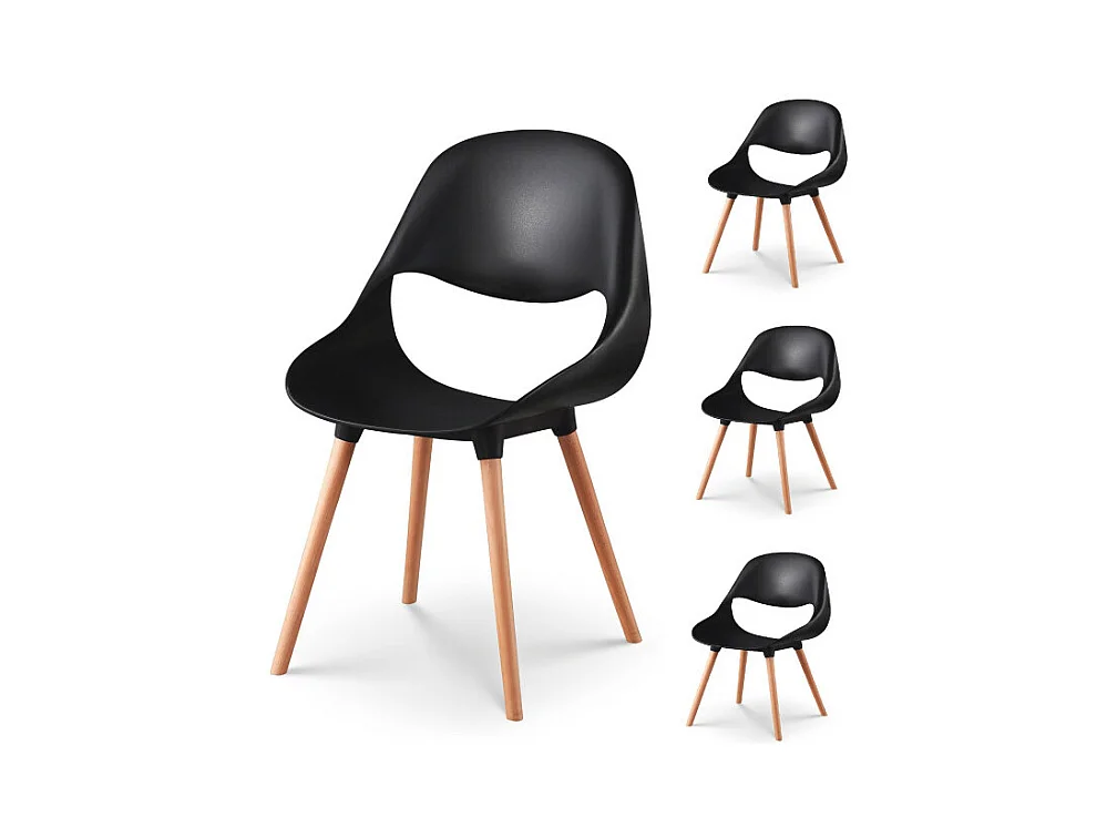 Lot de 4 chaises de salle à manger CHLOE noire et pieds en bois