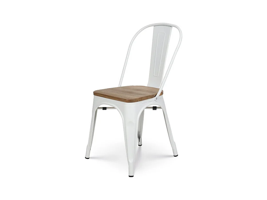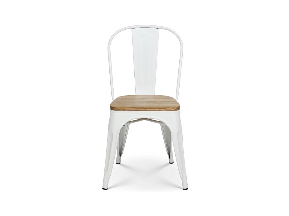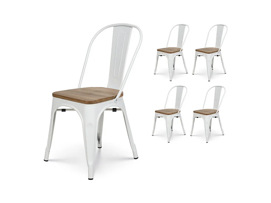 Lot de 4 chaises en métal blanc mat et assise en bois clair - Style industriel