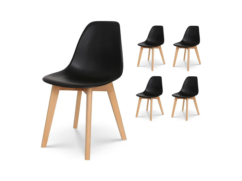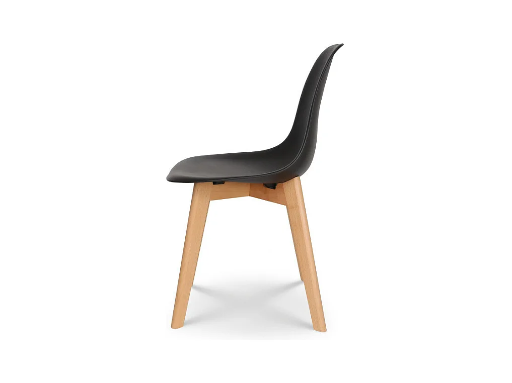 Lot de 4 chaises style scandinave modèle GABBY - Coque en résine noire et pieds en bois naturel