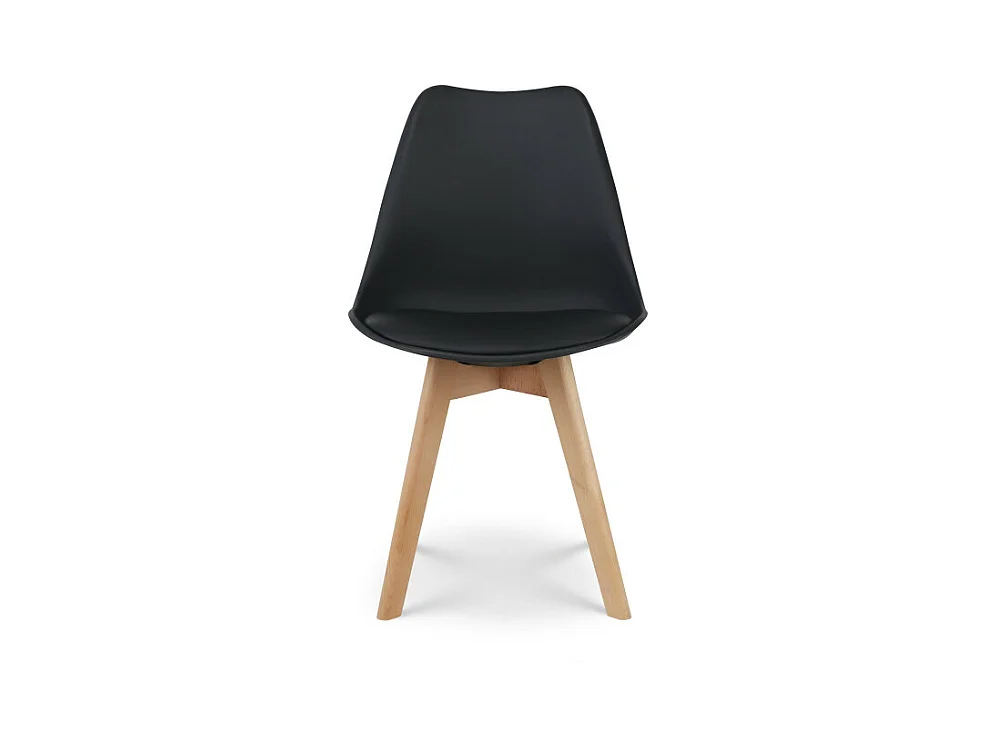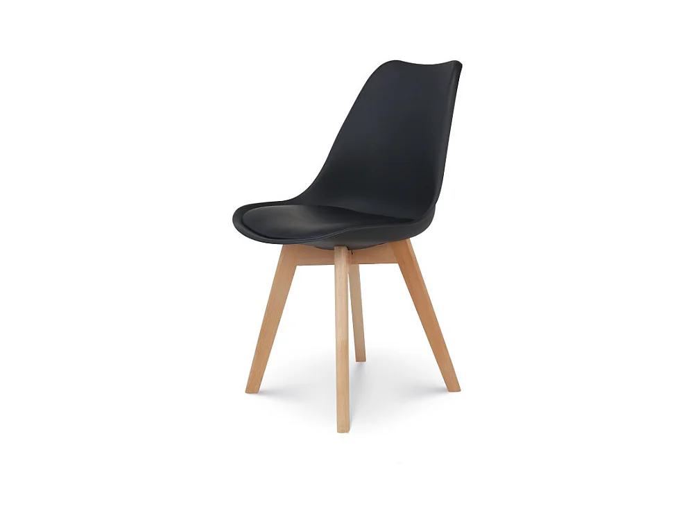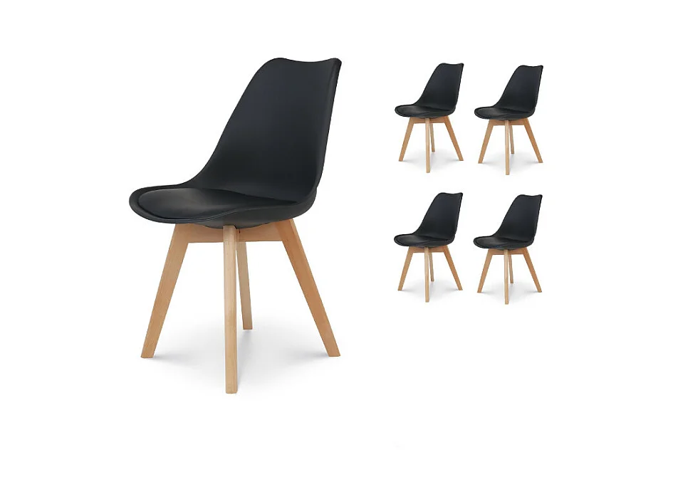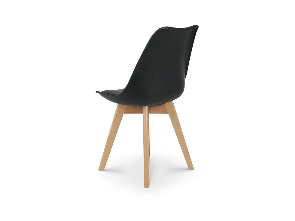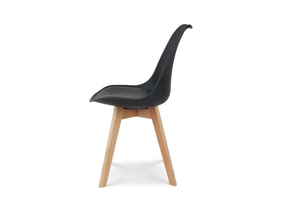 Lot de 4 chaises style scandinave VICTOIRE - Coque en résine noire rembourrée et Pieds en Bois Naturel