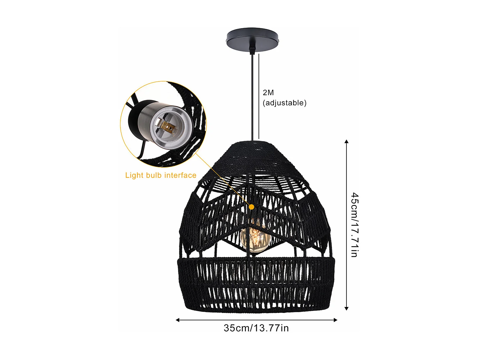 Kronleuchter aus natürlichem rattan für wohnzimmer, schlafzimmer und kücheninsel schwarz d35x h45cm