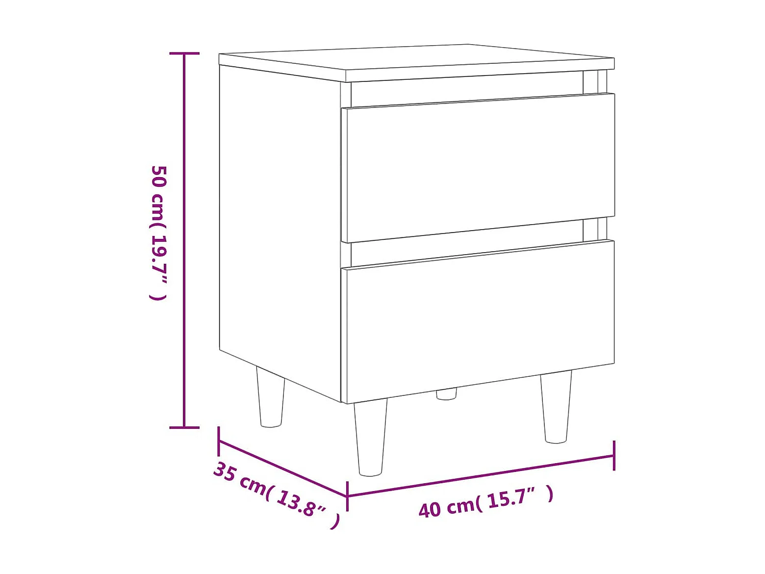 Kutztown Table de chevet avec pieds en bois Chêne fumé 40x35x50 cm