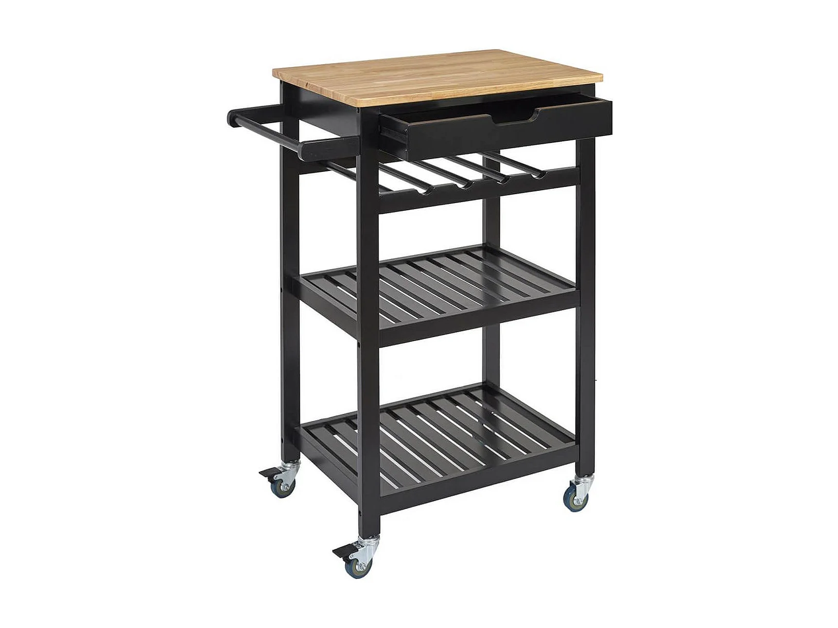 Chariot de Cuisine Noir avec Plan de Travail et Tiroir - 45 x 65 x 91 cm